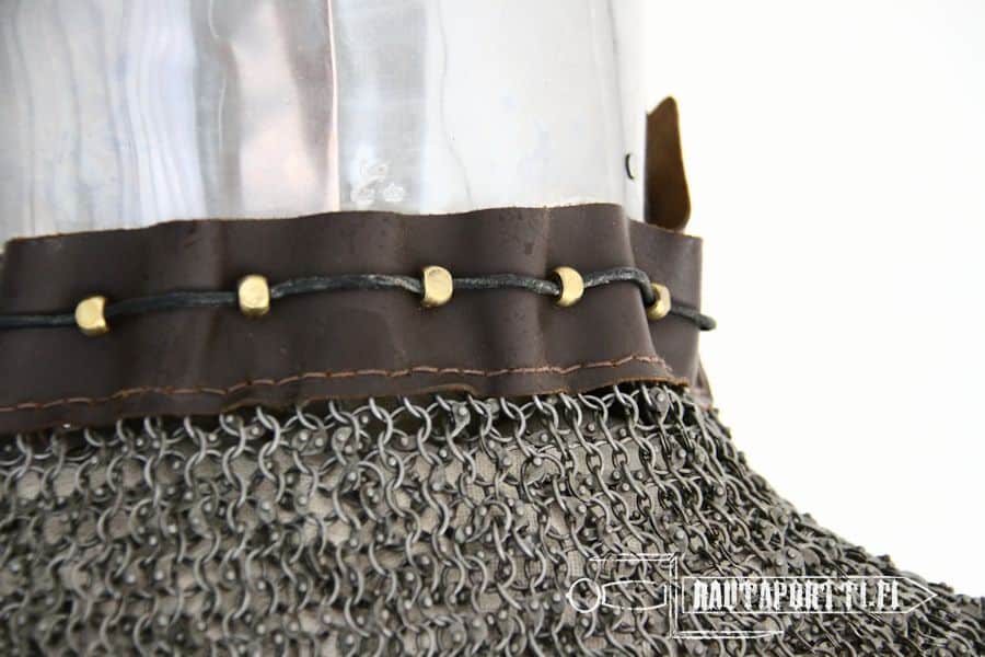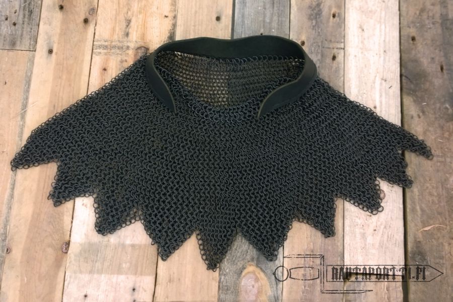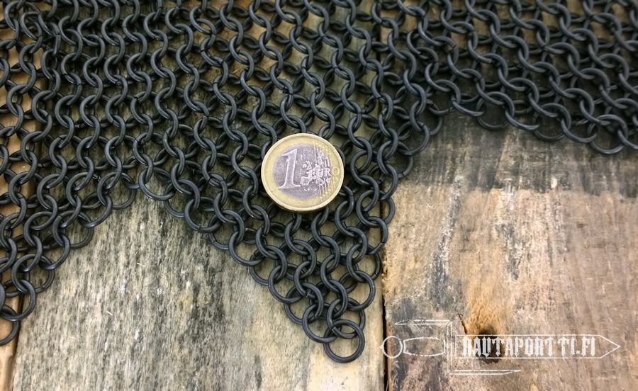 This aventail is made from blackened, 1.6mm strong, butted steel rings in the typical European 4 in 1 –style. It has been blackened to give protection against rust and corrosion.