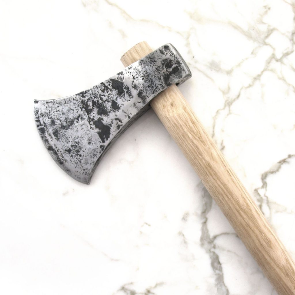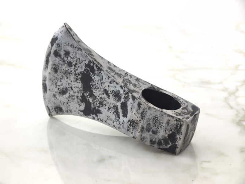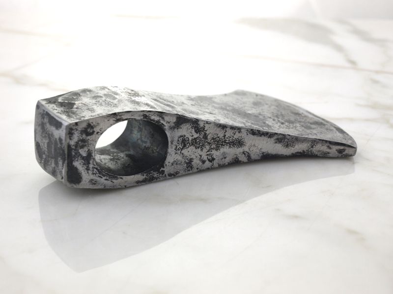 Axeblade is left in its unpolished state on purpose. The hammer traces of the forging lend the axe a very rustic and authentic look. A shaft is not included in the delivery.