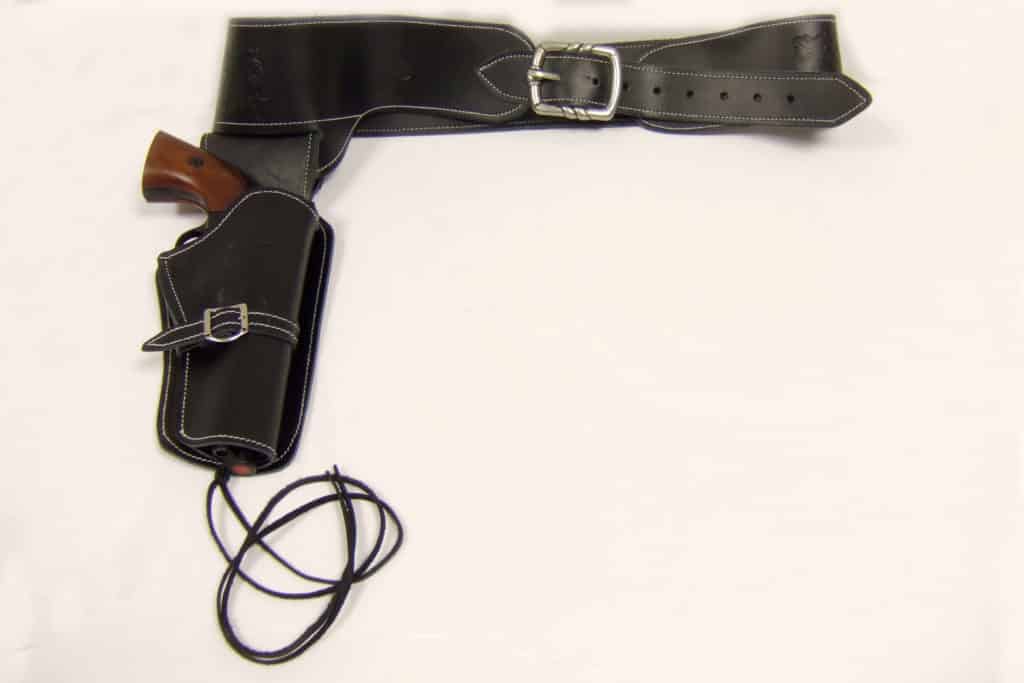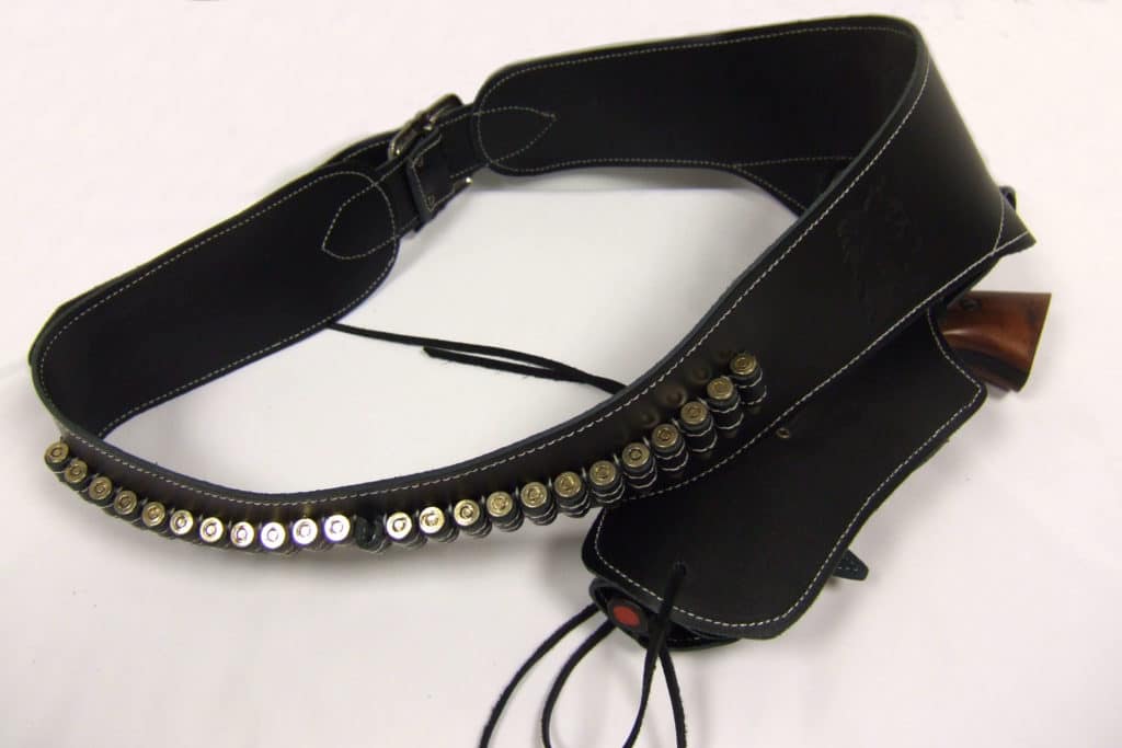 A stylish leather gun belt replica that fits the hips of a cowboy, a sheriff as well as a bankrobber who’s escaped to the Mexican side of the border. This black leather weapon belt suits any Colt .45 Peacemaker revolver in our range. Of course, since the replicas we sell are the original size, this weapon belt can also be used with the real revolvers.