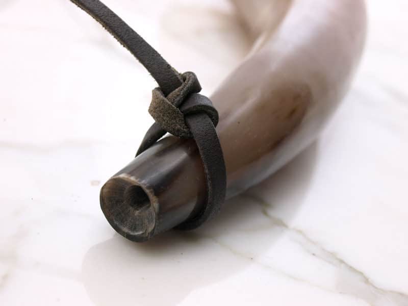 The sound is formed by pressing lips against the mouthpiece and making a fast vibrating sound with the lips while blowing (same as many modern day brass instruments). Changing tension of the lips and blowing pressure the sound of the horn can be found. Horn boosts the lip-generated sound and makes it a constant sound.