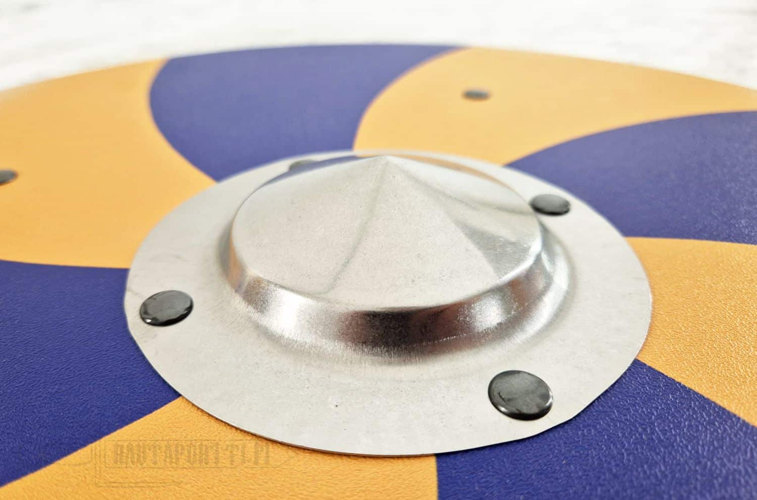 The shield is made of sturdy plywood and has a metal shield boss, just like a real viking shield.