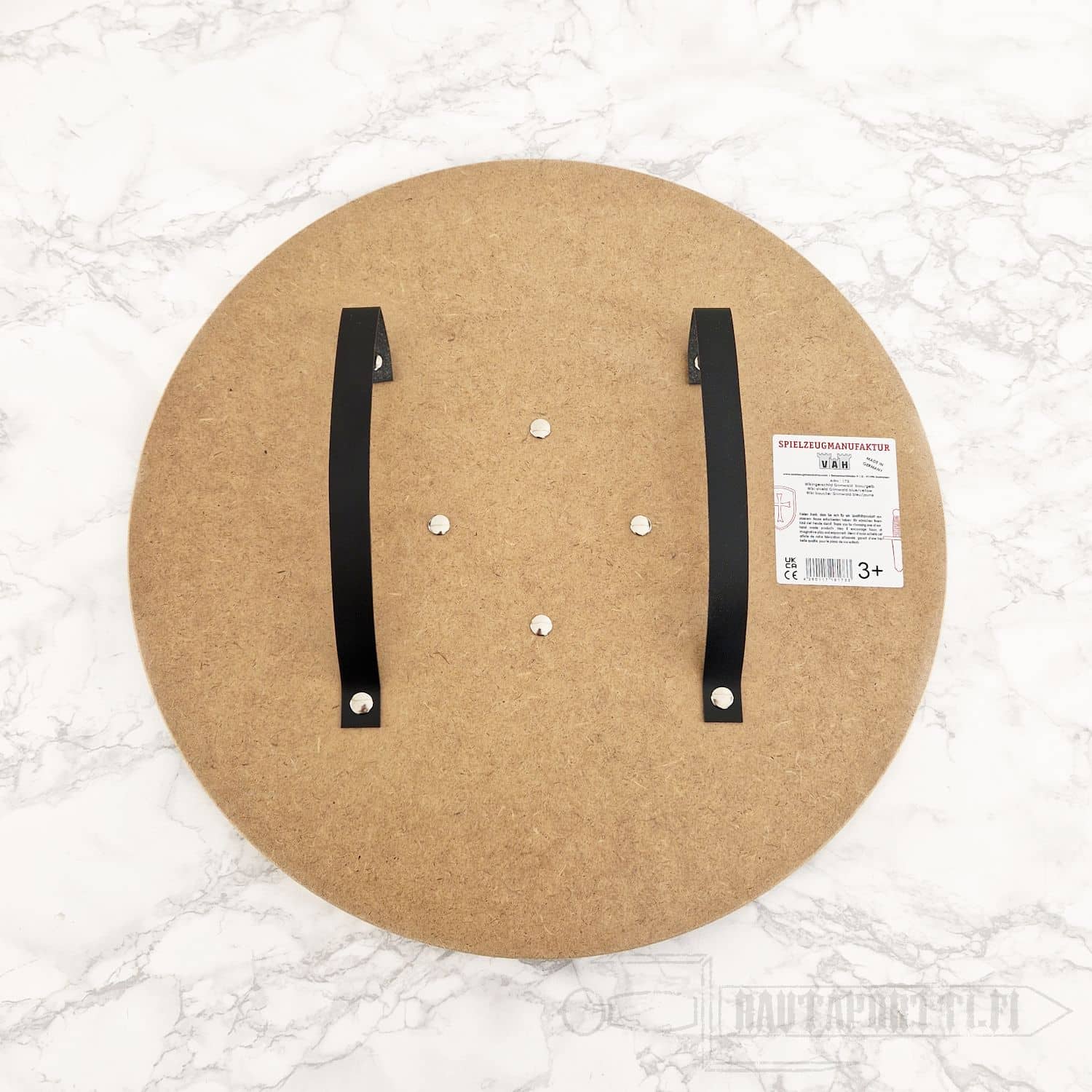 The shield measures approximately 41.5 cm in circumference Weight 540 g There are two straps at the back of the shield for correct and optimal use and carrying Made of sturdy plywood Made in EU