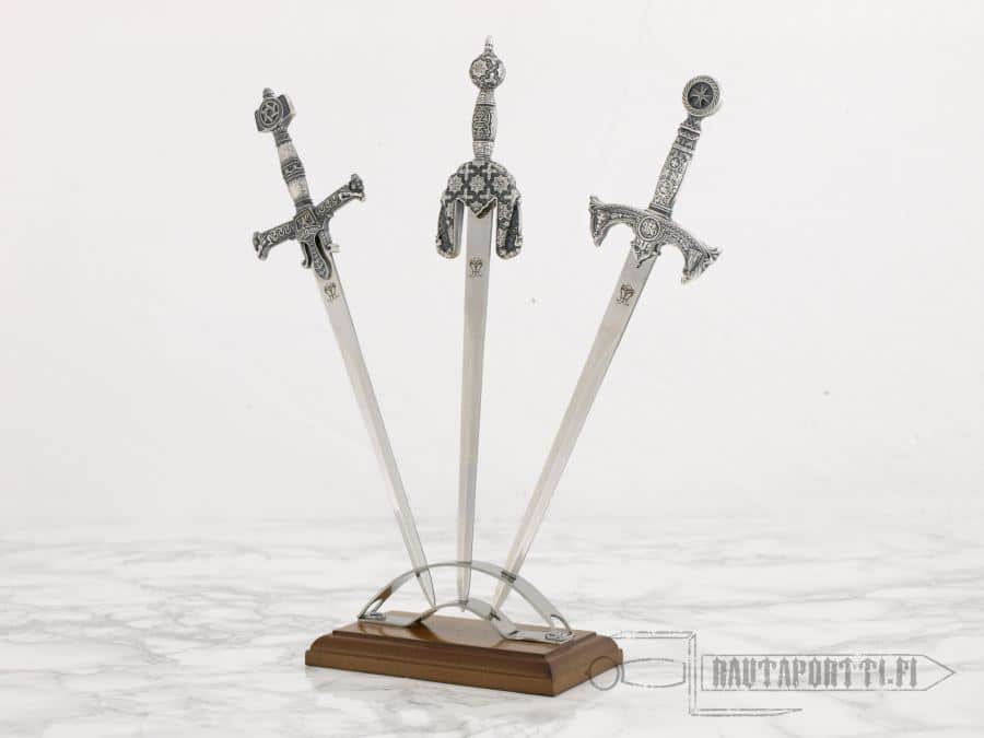 The gloriously decorated and opulent original sword of Boabdil, the last Moorish king of Spain, is displayed in the Museo del Ejército in Toledo. It is a jineta-type sword, a hispano-arab style with drooping quillions, popular in Granada during the 14th–16th century.