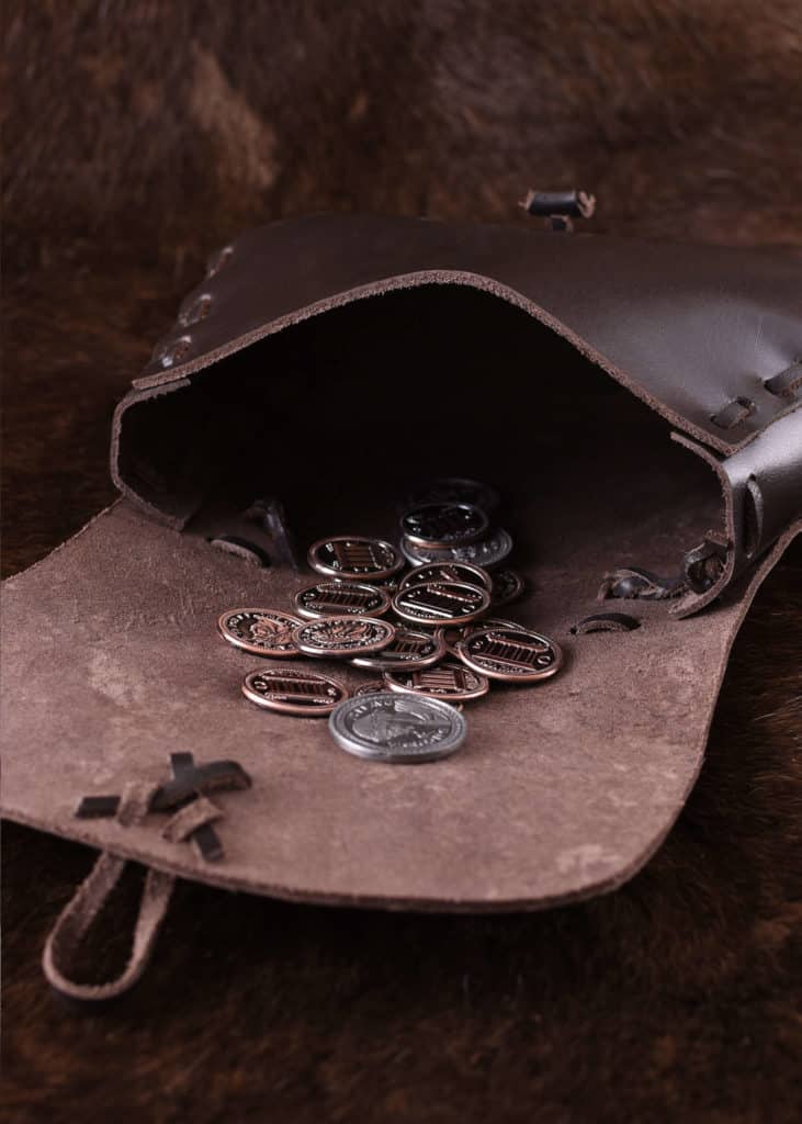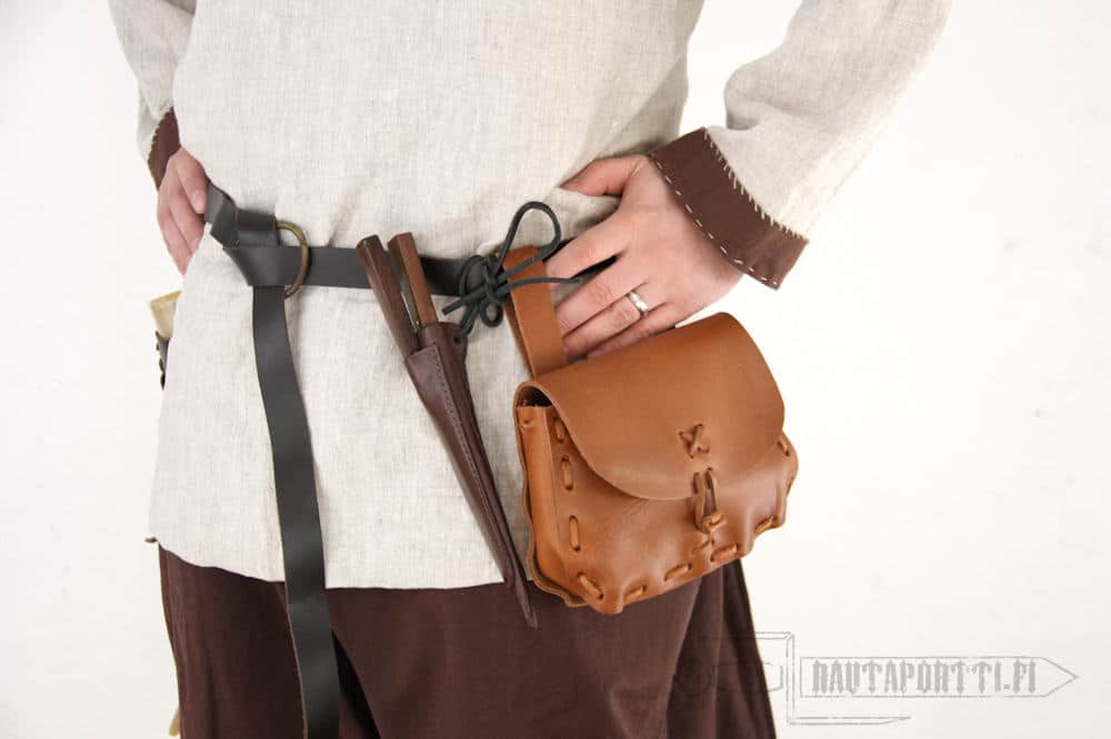 Bags attached to belts have been in use since antiquity in many cultures; even iceman Ötzi had a belt pouch 5000 years ago. As pockets were unknown in medieval times, this belt bag is a welcome addition for any historical outfit, giving it a layer of realism and practicality. This handy pouch will hold your money, your pipe leaf, as well as your tinderbox.