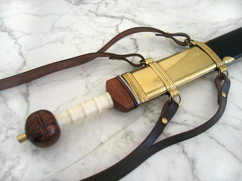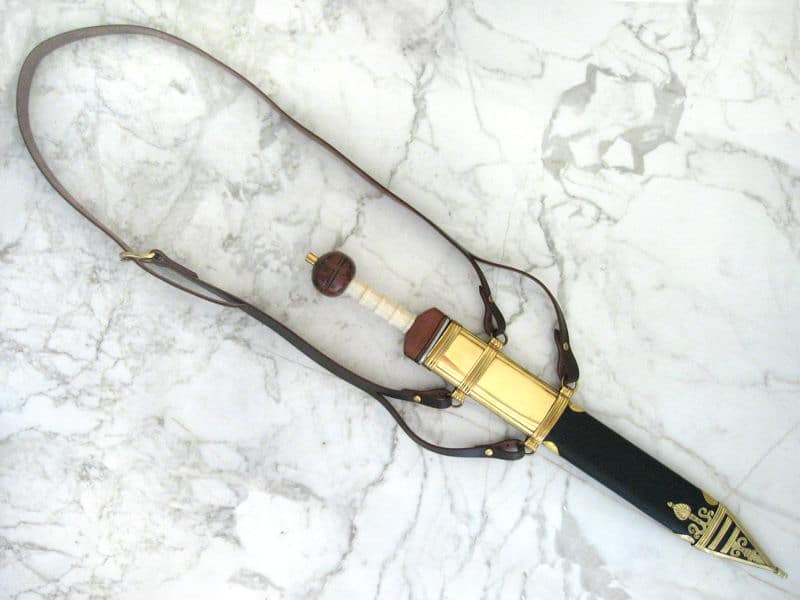 Baldrics have been in use throughout the ages, as long as the sword itself. Especially in classical antiquity a sword was carried with a shoulder strap. Use this fine quality, leather baldric to complete many of your period outfits. It goes especially well with our Roman Gladius where it can be instantly attached.