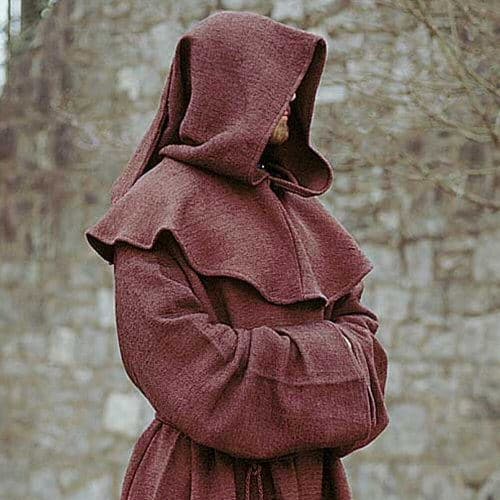 The monk’s robe has remained almost unchanged in use all through to modern times, and this robe is the most modern of the costumes we sell. The monk’s robe may be the most versatile and modest garment one could own, but don’t let its simple looks fool you. The person wearing it has most likely earned it through religious, magical or other secretive means. It was a mark of humble accomplishment and immense power. Rough textured fabric is 100 % heavy cotton weave and generously cut for the most devoted. Includes a long tail hood which can be worn separately, and a waist cord.