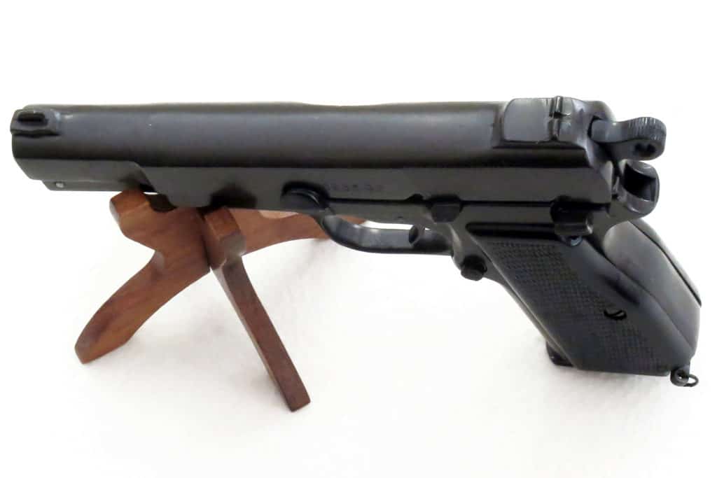 For the first time, a two-row magazine was introduced in this pistol, in which the cartridges could be loaded in parallel. Up to 15 9mm cartridges could be accommodated in the small space. The 9mm was a good choice: as a very common bullet it was available during the war, since a large number of different weapons used the same caliper. The Browning High Power was easy to disassemble and maintain. The magazine had plenty of bullets compared to many other weapons, and it was effective up to 50m. No wonder, then, that the weapon quickly became commonplace as a military pistol.