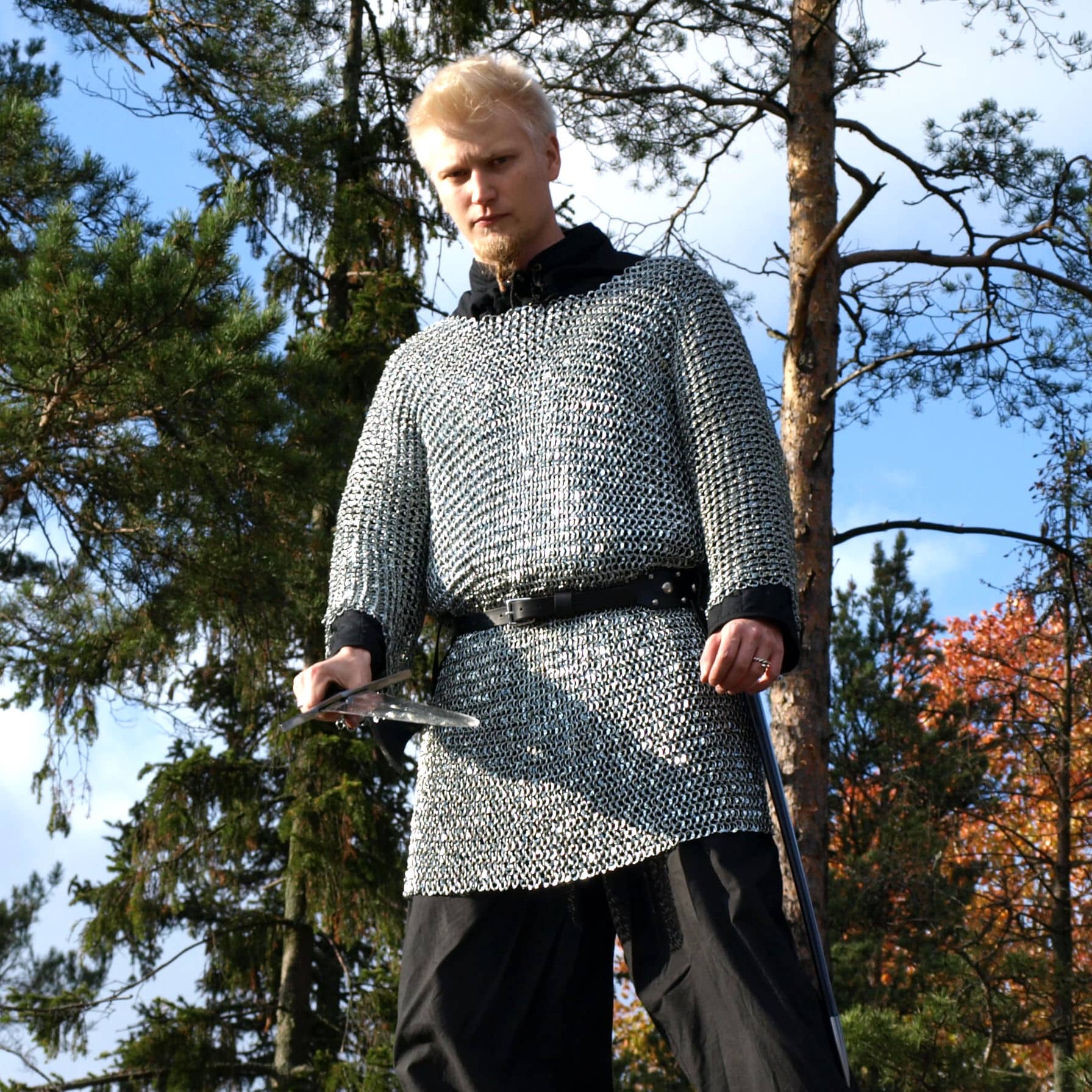 Mail is very durable, but due to its flexibility a forceful blow could cause bone fractures or contusions even if lacerations were avoided. That is why heavy padding was always used underneath chainmail shirts. Chainmail made of steel corrodes easily but all links in this shirt have been coated with zinc. This prevents rusting and you don’t need to keep this shirt oiled to keep it good looking.