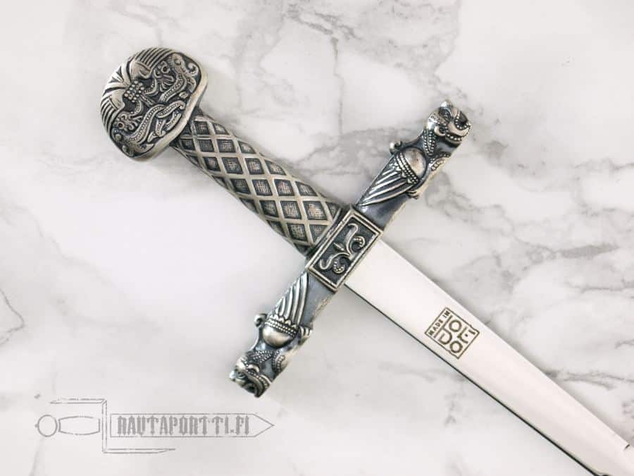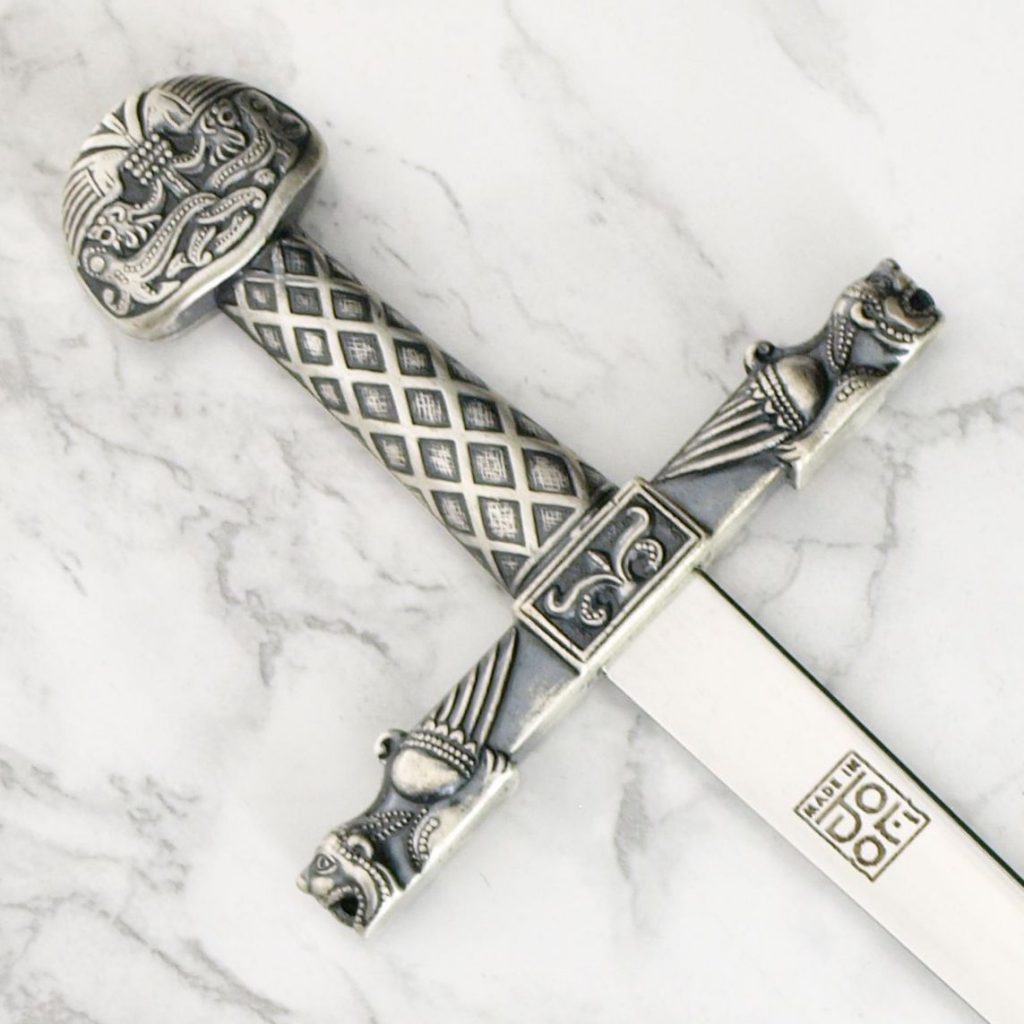 Charlemagne’s sword, “Joyeuse”, is one of the most famous swords in the world. It is the coronation sword of French kings and the original is kept in the Louvre. According to tradition, the Joyeuse was Charlemagnes personal sword, and legend states that it was forged by the famous blacksmith Galas, and took three years to complete. The sword was described as having magical powers, having been so bright that it could outshine the sun and blind enemies in battle, and any person who wielded it could not be poisoned. One story tells of how Charlemagne once lost Joyeuse and promised a great reward to whoever found it. One of his knights returned it to the king who stuck it in the ground and declared the lands around that spot to belong to the knight, which is the origin of the French town of Joyeuse, founded on that spot and named in honor of the sword. But as with all ancient relics there are also claims that it is much more recent, in this case 12th C. With the Joyeuse the ideals of a western civilization, Roman justice and -practices and the idea of European unity were spread. Within a few centuries of his death Charlemagne was lifted to be the symbol of that unity, a legacy which still continues.