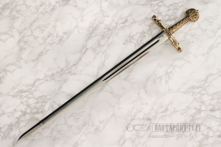 The stainless steel blade is easy to care for, and the sword is ideal as a decoration, as part of a costume, as a collectible and suitable for light cutting practice. The material is not suitable for steel-on-steel fencing or heavy cutting practice. No sheath included.