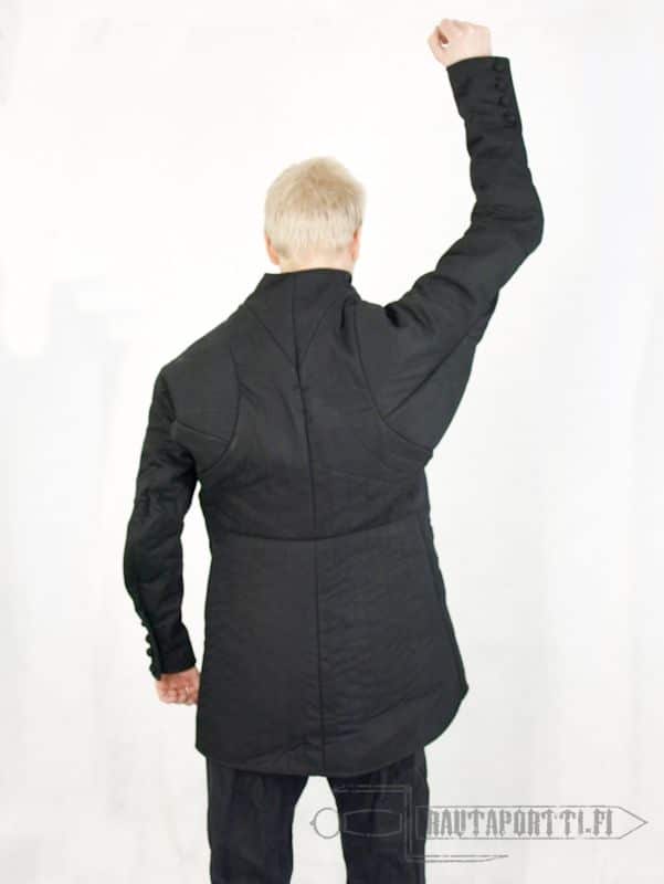 Olen käyttänyt takkia yhteendä noin neljä vuotta päivittäisessä siviilikäytössä sekä ratsun selässä että kevyemmissä miekkailuharjoituksissa. Erinomainen vaate myös retkeilyssä kunhan huomioi ettei tässä tietenkään ole taskuja.