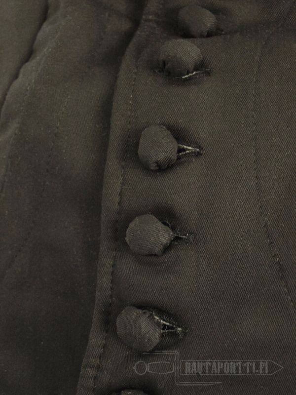 Todella tyytyväinen laatuun kaikinpuolin. Aluksi “miljoona” liian tiukkaa nappia hidastivat pukemista mutta ovat ajan myötä löystyneet juuri sopivasti. Mainio takki. Kestää konepesua ja rajumpaakin retuutusta.