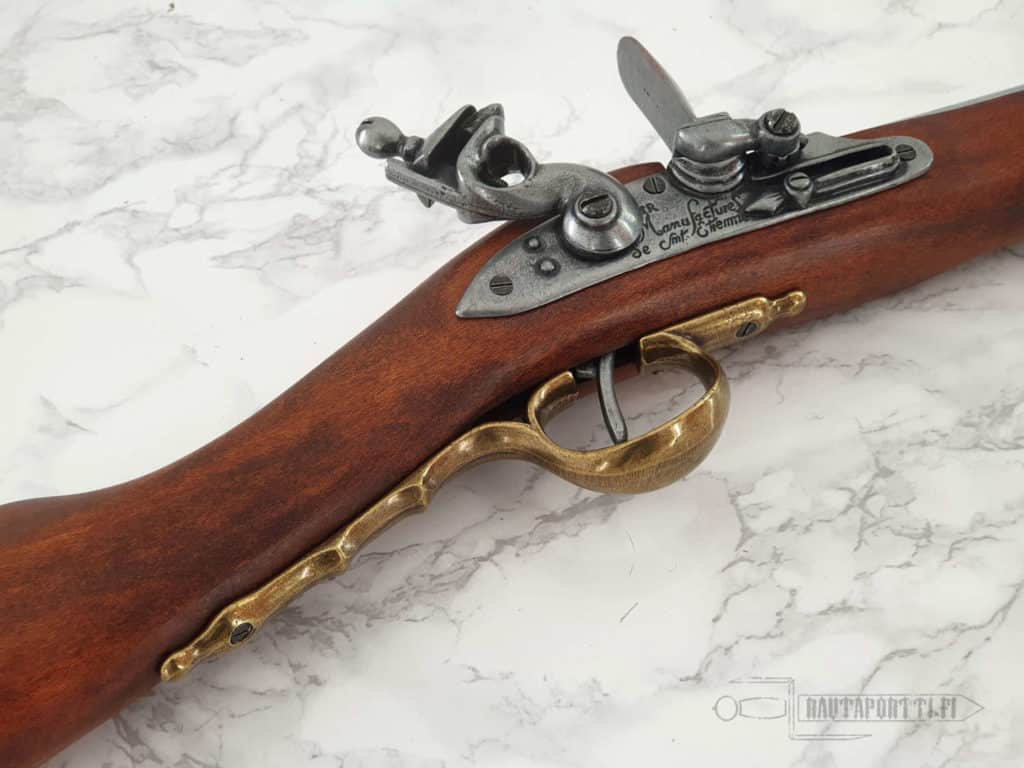 Of course, Charleville muskets were made not only in Charleville but also in other gun factories in France, but the name of the gun remained. The weapon, which was in production for a long time, can be found in several different versions, and new small improvements may have been made every few years. In appearance and style, this replica corresponds to the model 1766 and later versions.