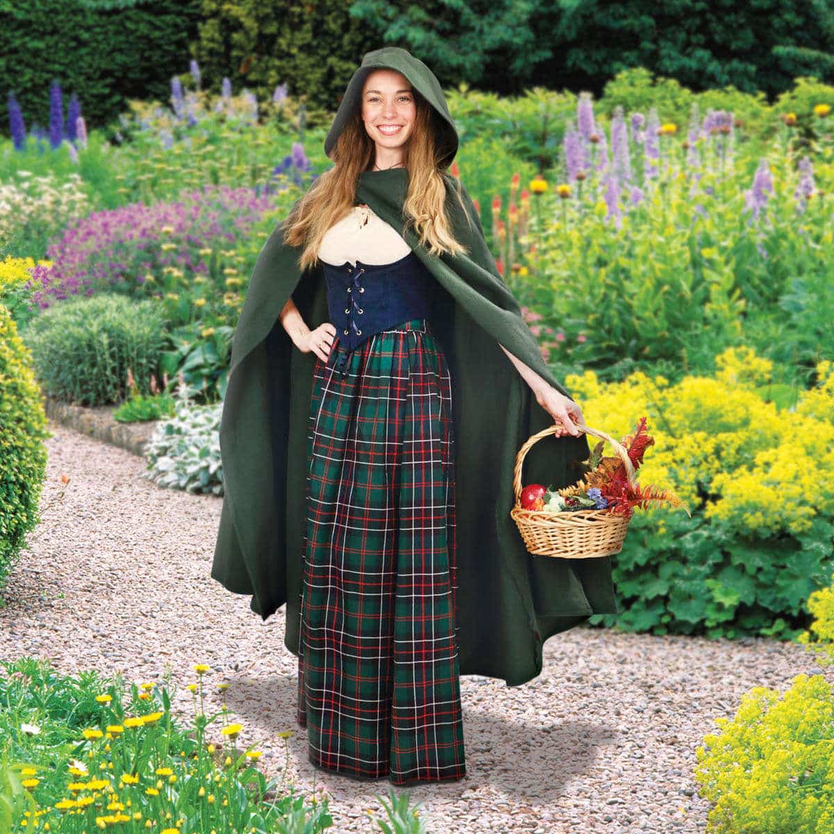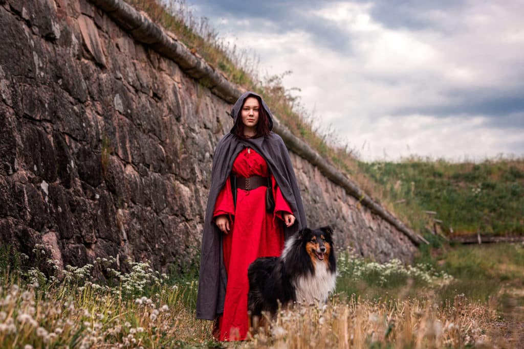 A cloak has been an integral part of clothing in many cultures, as it protects the wearer from the elements, is fast and easy to put on and take off, and it doesn’t restrict arm movement. In medieval times a cloak like this would have served several purposes: it kept the wearer warm and dry, protected other clothes from wear and tear and could be used as a blanket to wrap oneself in whilst sleeping.