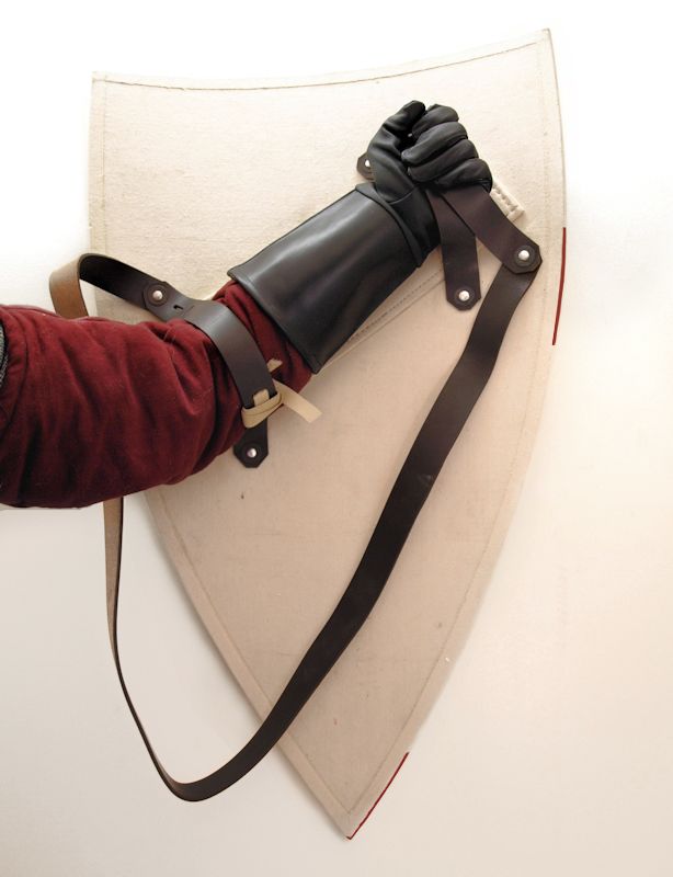 At the beginning of the Middle Ages in Europe shields were almost without exception made of wood and the Normans had began using new shield shapes. Approximately the height of half a man and kite-shaped, these shields spread all through Europe with the Normans. Throughout the centuries the shield model shrunk and eventually established itself as a typical and traditional European shield. This knightly shield model is battle ready and worthy of the originals.