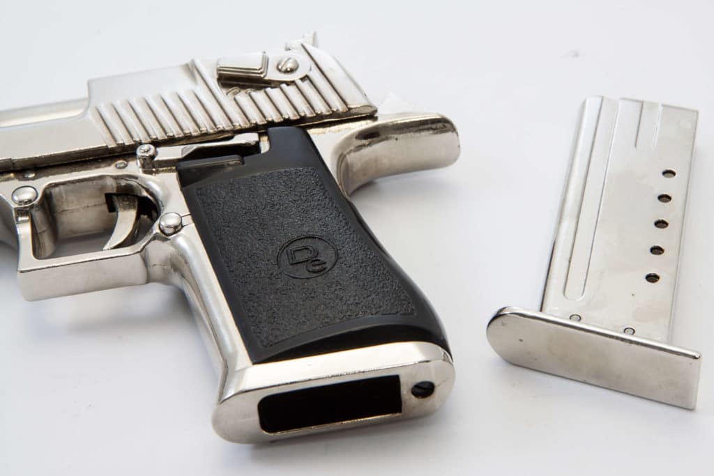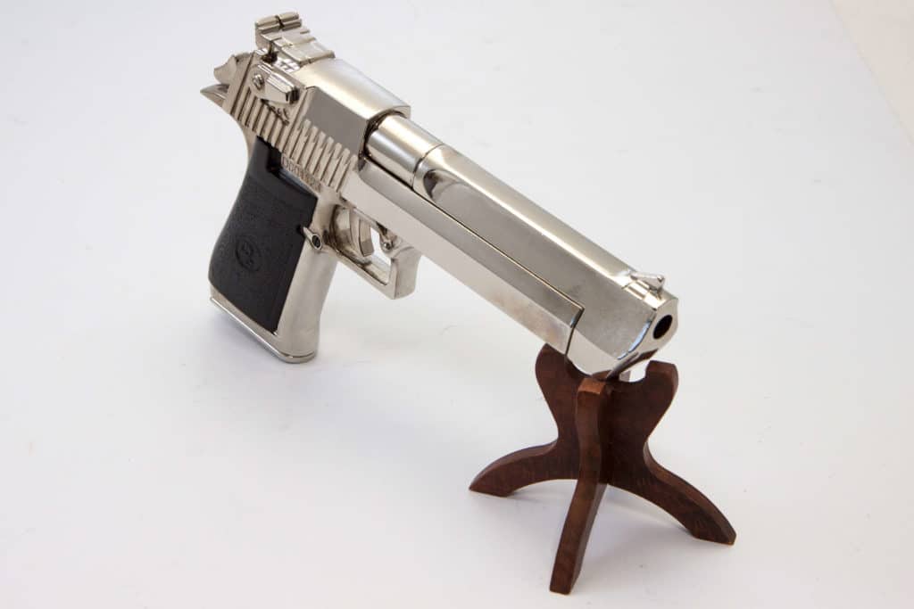 The Desert Eagle is a particularly robust semi-automatic pistol that fires the largest ammo you can buy for handguns. Designed in the United States and manufactured in Israel, this pistol is the most powerful magazine-fed, self-loading pistol commercially available. The downside of the weapon is its size and weight, but when seeking maximum impact force, there is nothing that comes close to the Desert Eagle.