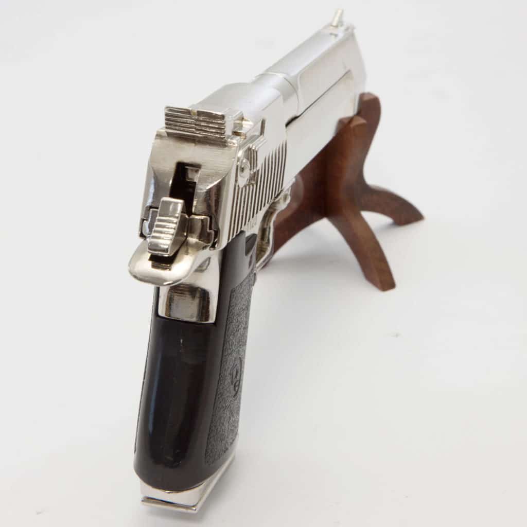 - This gun is an exact replica of the original. The replica matches the original in size and weight, and the main mechanisms of the weapon are working. The weapon can be cocked and dry fired like a real one. The slider moves and the magazine can be removed. Due to the materials used, the mechanisms cannot withstand continuous cocking and firing for long periods.
