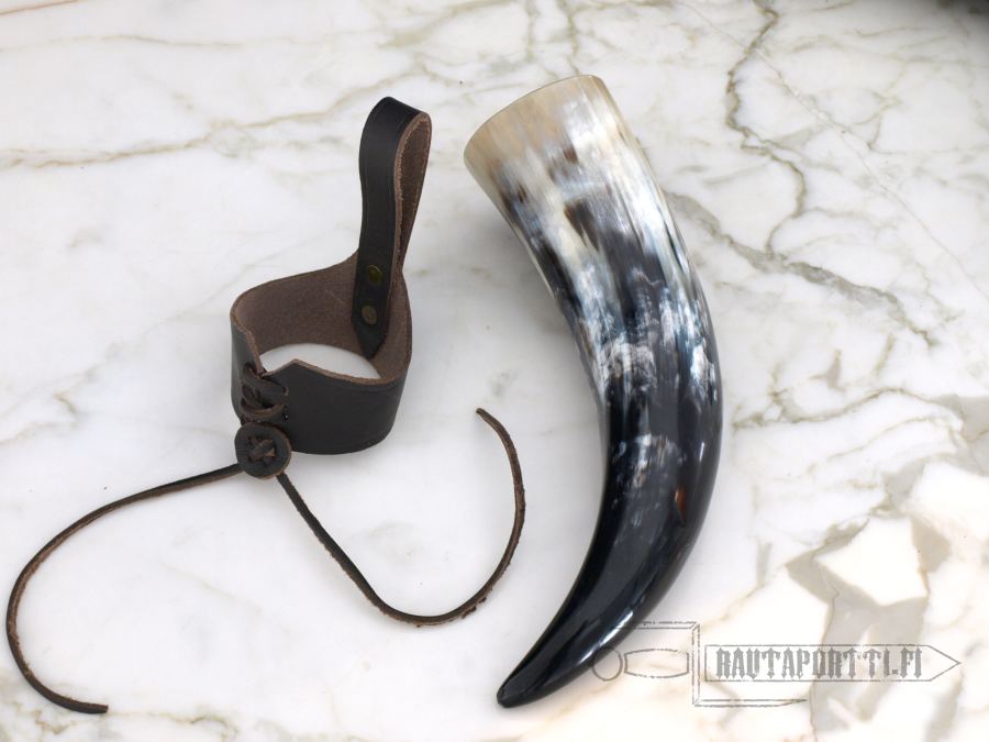 Made of natural and authentic horns Food safe varnish coating on the surface inside and outside Includes a leather belt hanger Can be used for cold and warm drinks but not hot drinks Can be used for drinking both alcoholic and non-alcoholic beverages