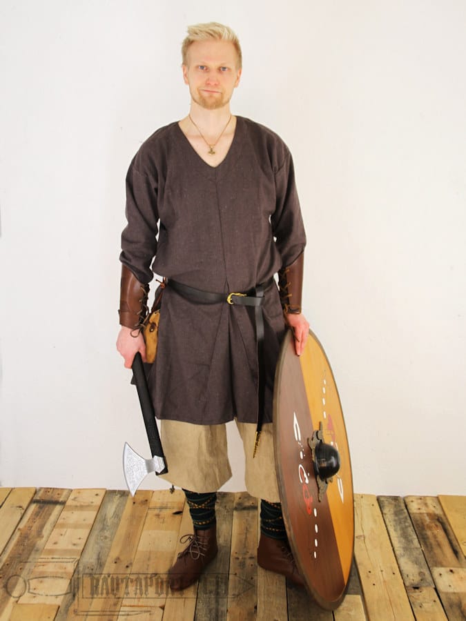 This light and comfortable tunic is made of authentic- , rough- and hand-made -looking weave made of 100% cotton. The tunic is based on a survived original piece. The clothing style changed very slowly in the northern Europe and you could easily run into something like this in the countryside even at the beginning of the Modern Era. Tunics like this were common from around 800 to the 1300s. Made by Marshal Historical.