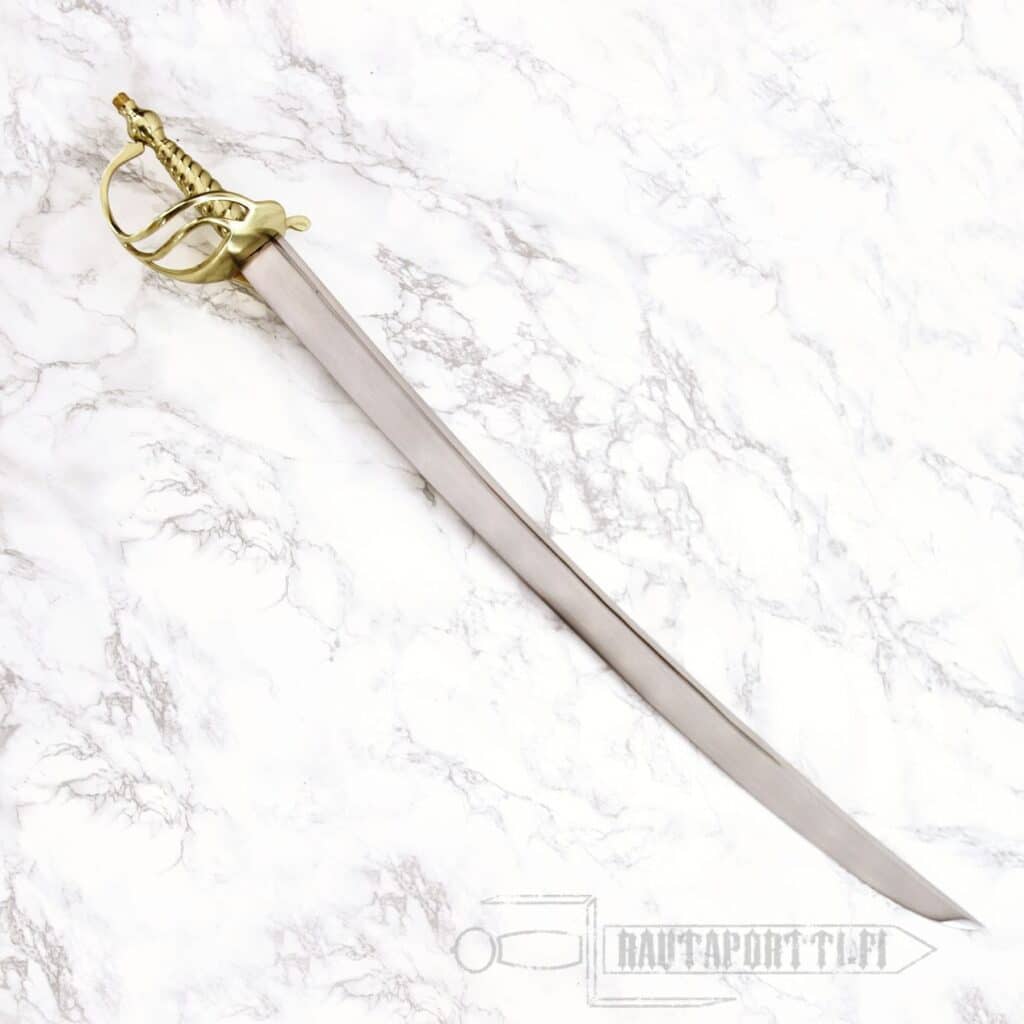 Carried during the late 1600s, through 1700s and well into 1800s, this sword was also called a hanger. (The term cutlass wasn’t used as an exclusive term for the sailor’s fighting sword until the 1800s.) In addition to sailors these swords were frequently also used on land by officers as a close quarters battle weapon because of its compact dimensions.