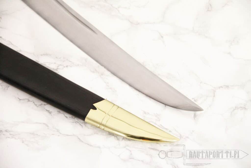 Overall length: 81 cm Weight: 1060 g Blade material: 1065 High Carbon steel Sharpness: Unsharpened Includes leather scabbard with brass fittings