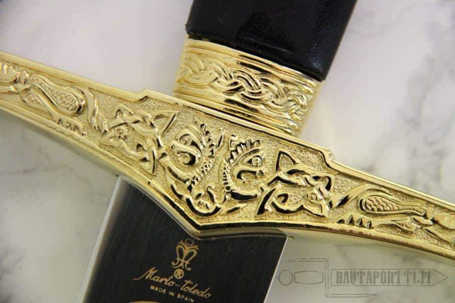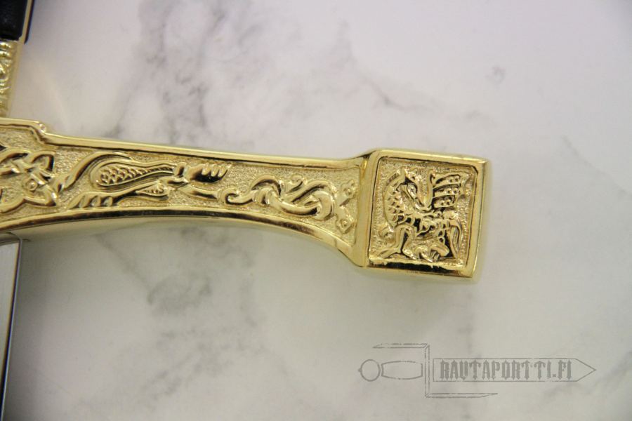 Our Excalibur honors King Arthur, the legendary British leader. This excellent item features an ornate hilt, displaying several images and decorations with Arthurian motifs that add character and appeal. The stainless steel blade has etched animal and plant motifs in a Celtic style, including the dragon. Excalibur is available in three sizes: as a full size 118 cm long sword, as a shorter 75 cm long version and as a letter opener.