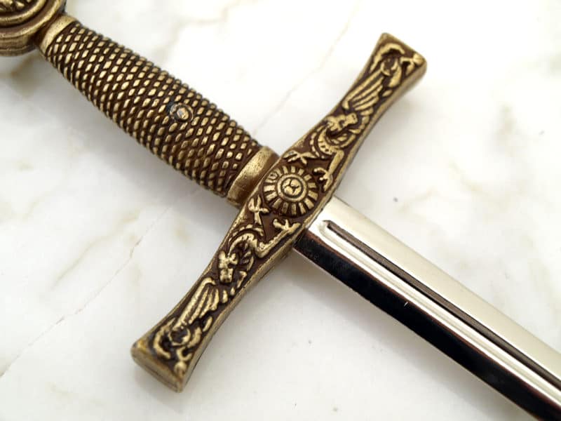Excalibur is a legendary sword with magical powers and stories about it have been told since early Celtic folklore and legends of this magical sword are still told nowadays. In some stories King Arthur got this sword from the Lady of the Lake and in others Arthur was the only person that was able to pull the sword from the stone. The owner of Excalibur was “the true king” and using the sword Arthur was able to gain the throne of Great Britain.
