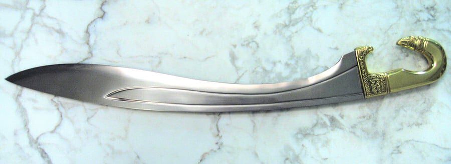 - The inward curving blade delivered a tremendous blow and could split both shield and helmet