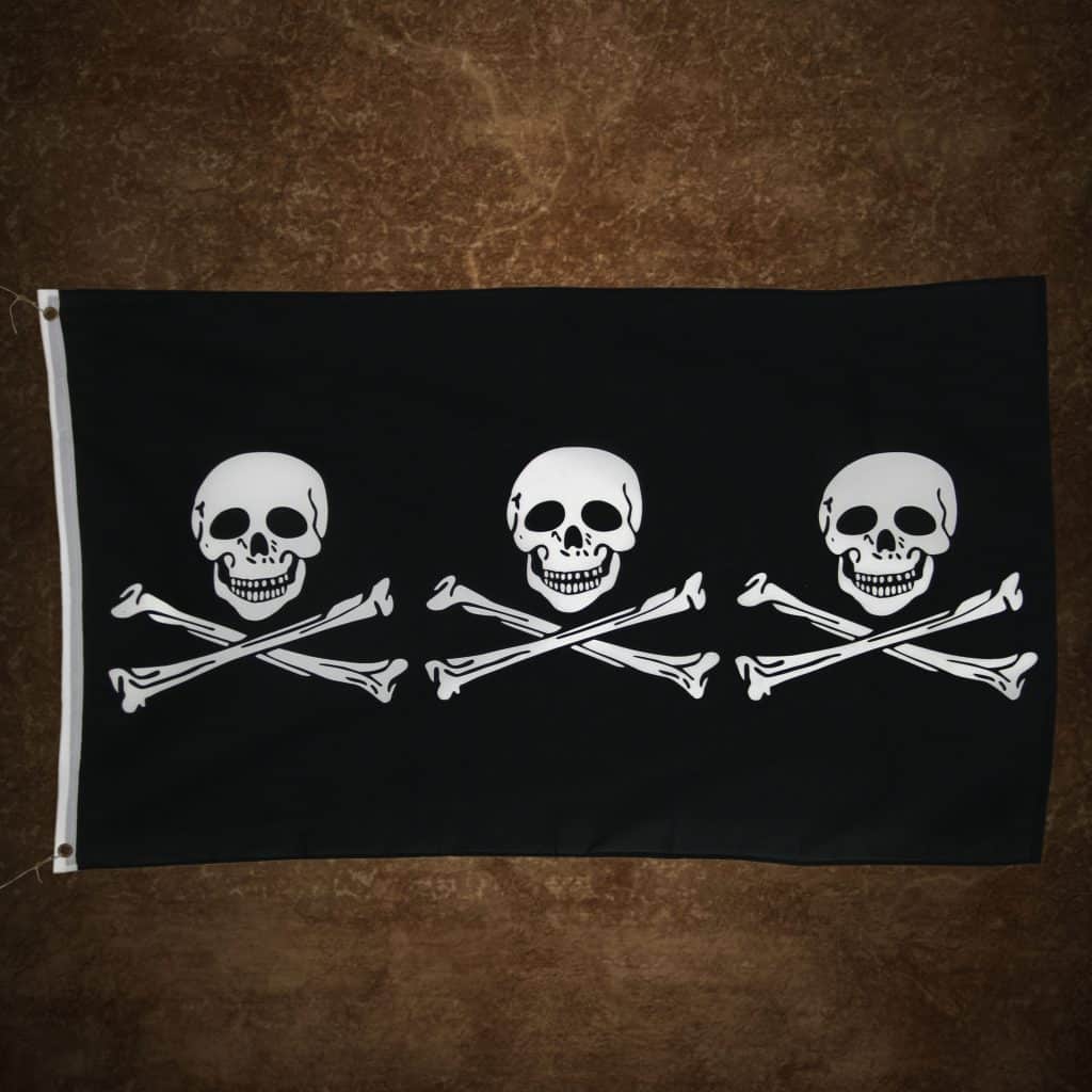 The use of a pirate flag, or a “Jolly Roger”, continued in these new waters. The flag was probably intended as communication of the pirates’ identity, giving target ships an opportunity to surrender without a fight. If a ship decided to resist, the Jolly Roger was taken down and a red flag was flown, indicating that the pirates intended to take the ship by force and without mercy. Flying a Jolly Roger was a reliable way of proving oneself a pirate. Just possessing a Jolly Roger was considered proof that one was a criminal pirate rather than something more legitimate; only a pirate would dare fly the Jolly Roger, as he was already under threat of execution.