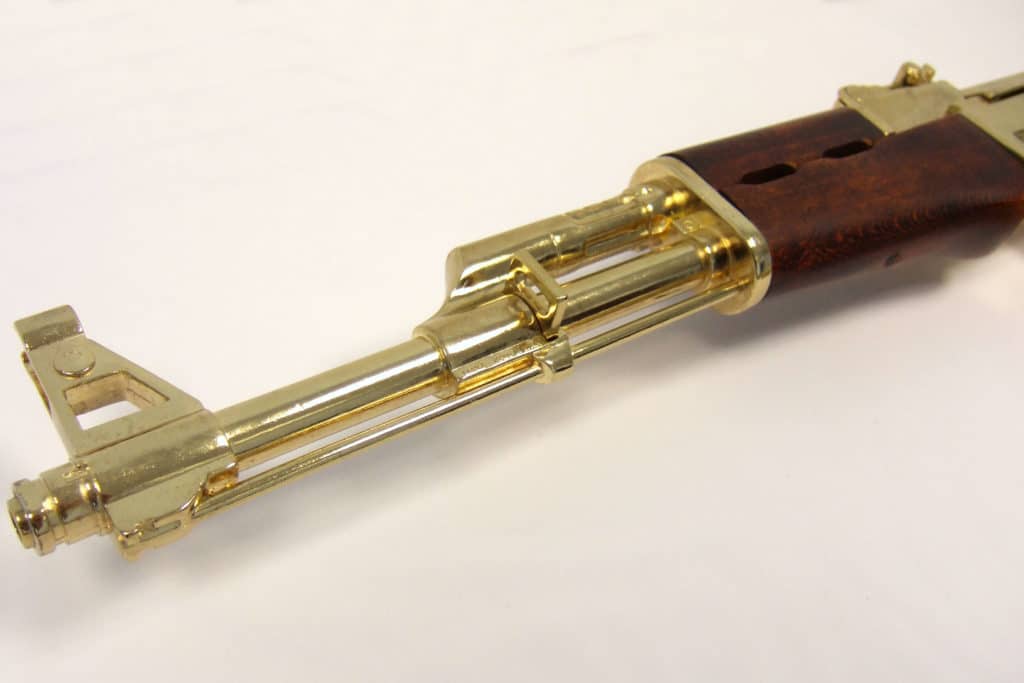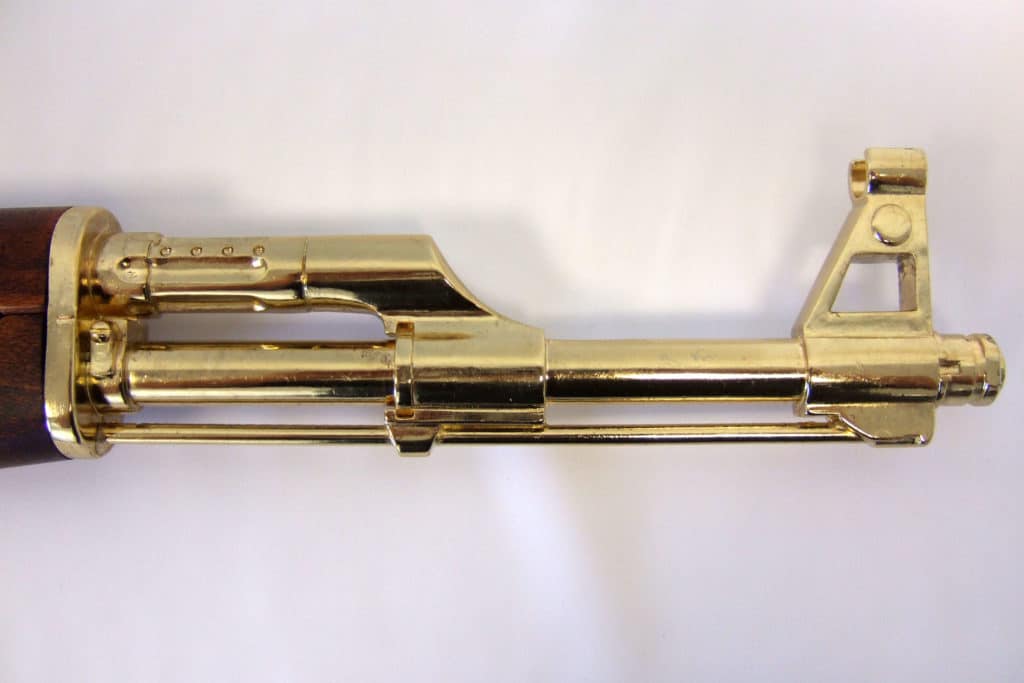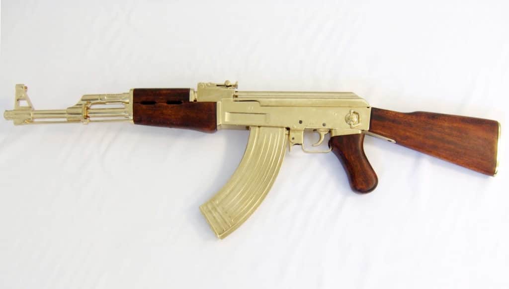 Golden AK-47 assault rifles have appeared in movies, games, TV series as well as in real life. The Golden Assault Rifle is the weapon business equivalent of a design handbag; an object whose sole purpose is to be as expensive as possible and thus reflect the wealth of the owner. Golden AK-47 assault rifles have been seen at the side of, for example, Saddam Hussein, Muammar Gaddafi, Mexican drug cartel bosses, Russian oligarchs and oil-rich Arabs.