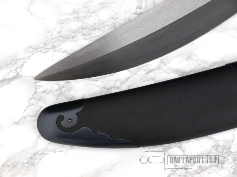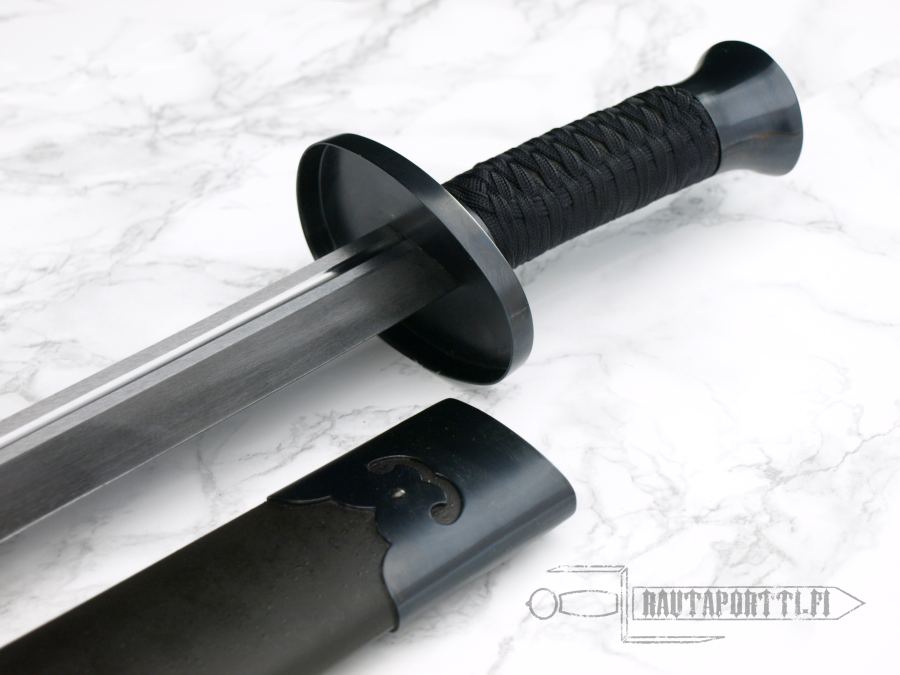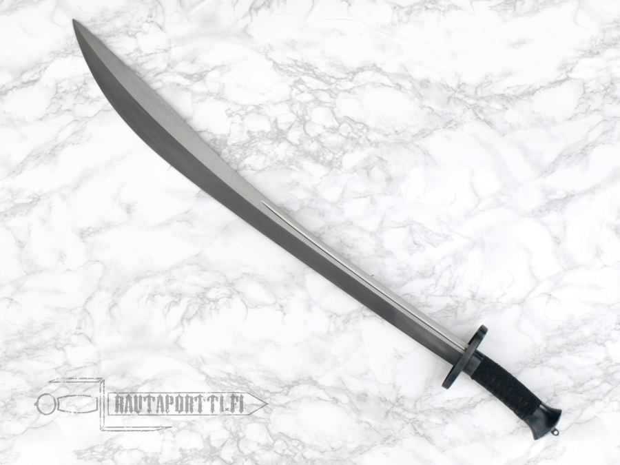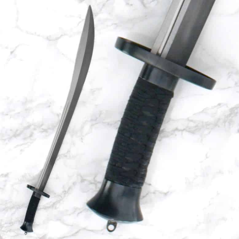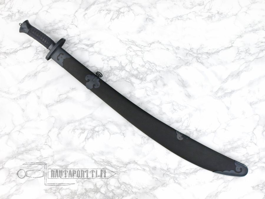 This Chinese broadsword, or sabre, however you like to call it, is the traditional niuweidao or oxtail dao. It is a relatively heavy bladed weapon with a characteristic flaring tip and a roundish cutting section. The blade is optimal for cutting soft unarmored targets. The Niuweidao first appeared during the latter part of the Qing dynasty. This Practical Gongfu Broadsword has a distal-tapered 1566 high carbon steel blade, wooden grip wrapped in cord and blackened steel fittings. The balancing and light weight of the dao make it a very quick and easy to handle, and the sharpness makes it ideal for cutting practice. The textured wooden scabbard is designed with a slotted opening, which makes both for easy sheathing and graceful lines. In line with other swords in the “Practical” series, this Practical Gongfu Broadsword is very affordable.