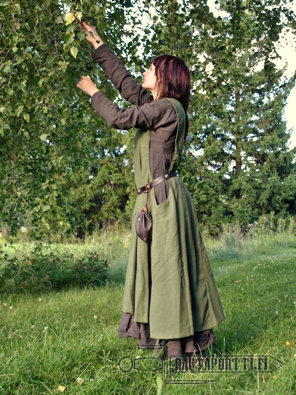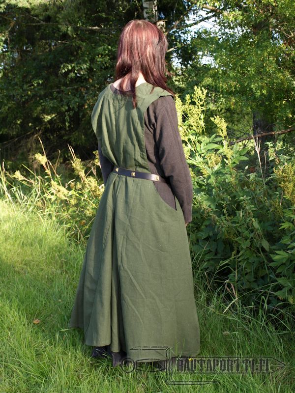 Because of large side openings this surcoat fits practically anyone whatever the size of the surcoat. At waist the dress is very wide and at chest it’s open on both sides, why a classic measured size chart is impossible to make. You don’t want to choose the correct size for you depending on chest- and waist measurements but rather think how low you want the hem of your surcoat to hang. If you want the hems of your under dress and surcoat to be at the same height then choose the same size for both. If you would rather have your surcoat stop a bit higher that your under dress so that the hem of your under dress can be seen then choose one or two sizes smaller surcoat.