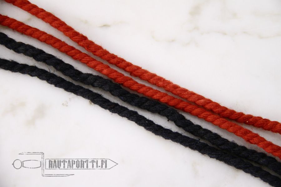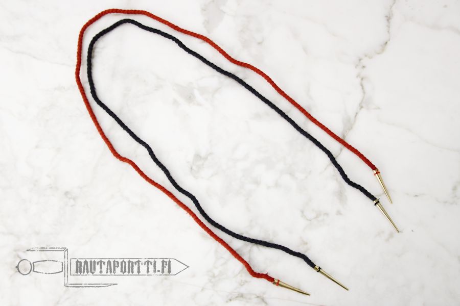 100% braided cotton Brass chape at the both ends of the lace Diameter of chape: approx. 4.6 mm Lace length approx. 68 cm Choose from red, black and white
