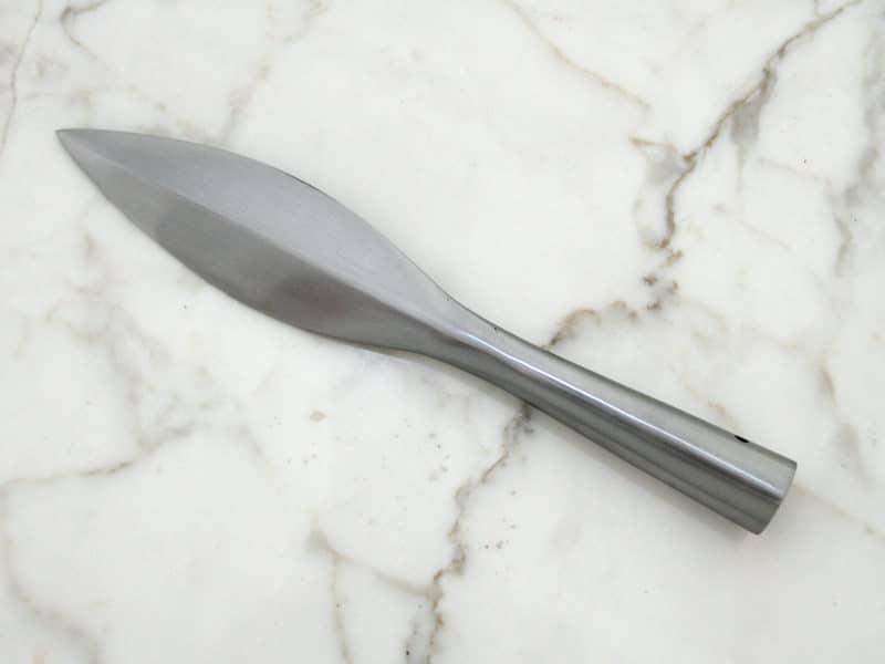 Ajaa asiansa mallikkaasti. On heitetty puutauluun, köysitauluun, puuhun ja muutama vahinko jopa kiveen. Yllättävänkin kestävä ja loppupääksi sopii hätäisemmille vaikka harjanvarsi. Ruostunut ulkona mutta siistiytyy näppärästi vaikka hiontasienellä. Suosittelen!