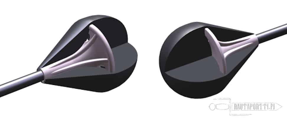 The nock has a smooth shape with rounded edges that minimizes the risk of injury in case of backlash. It fits flush with the shaft and the inner surface of the bowstring-receiving groove is designed to ensure lowest possible abrasion to the string.