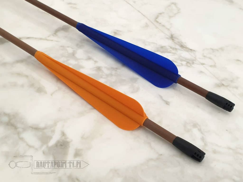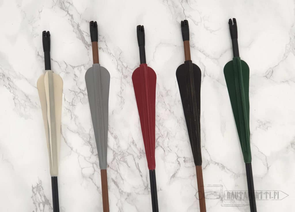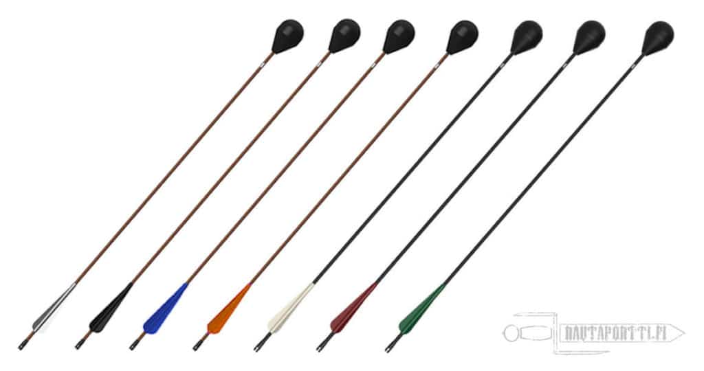 - Available in 7 different color combinations: brown shaft with silver, black, blue or orange fletching and black shaft with burgundy red, green or white fletching