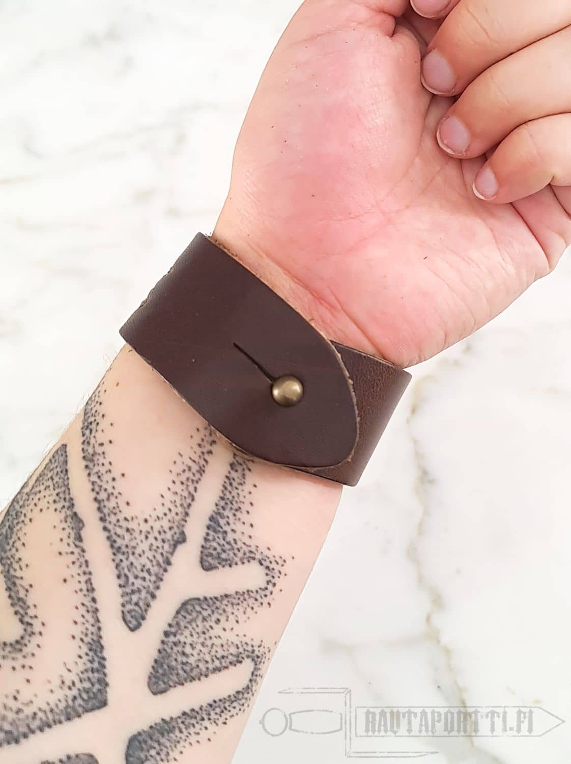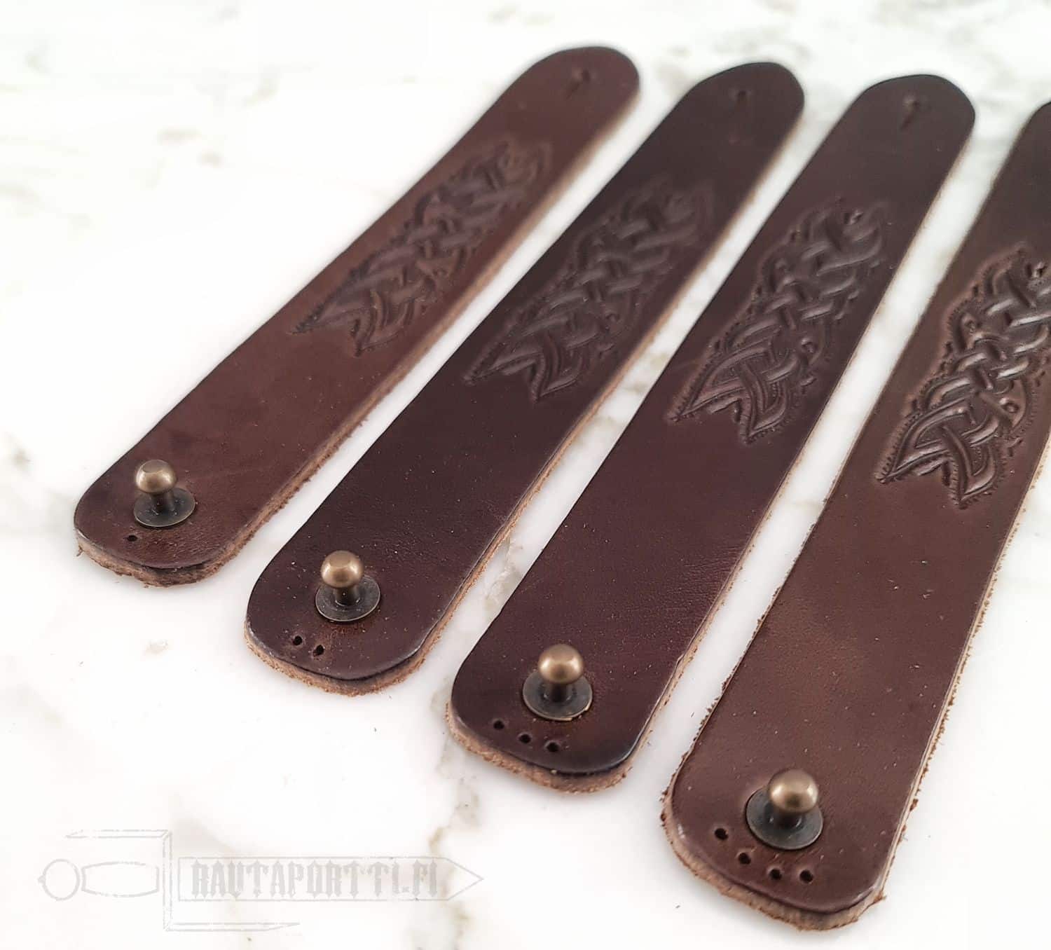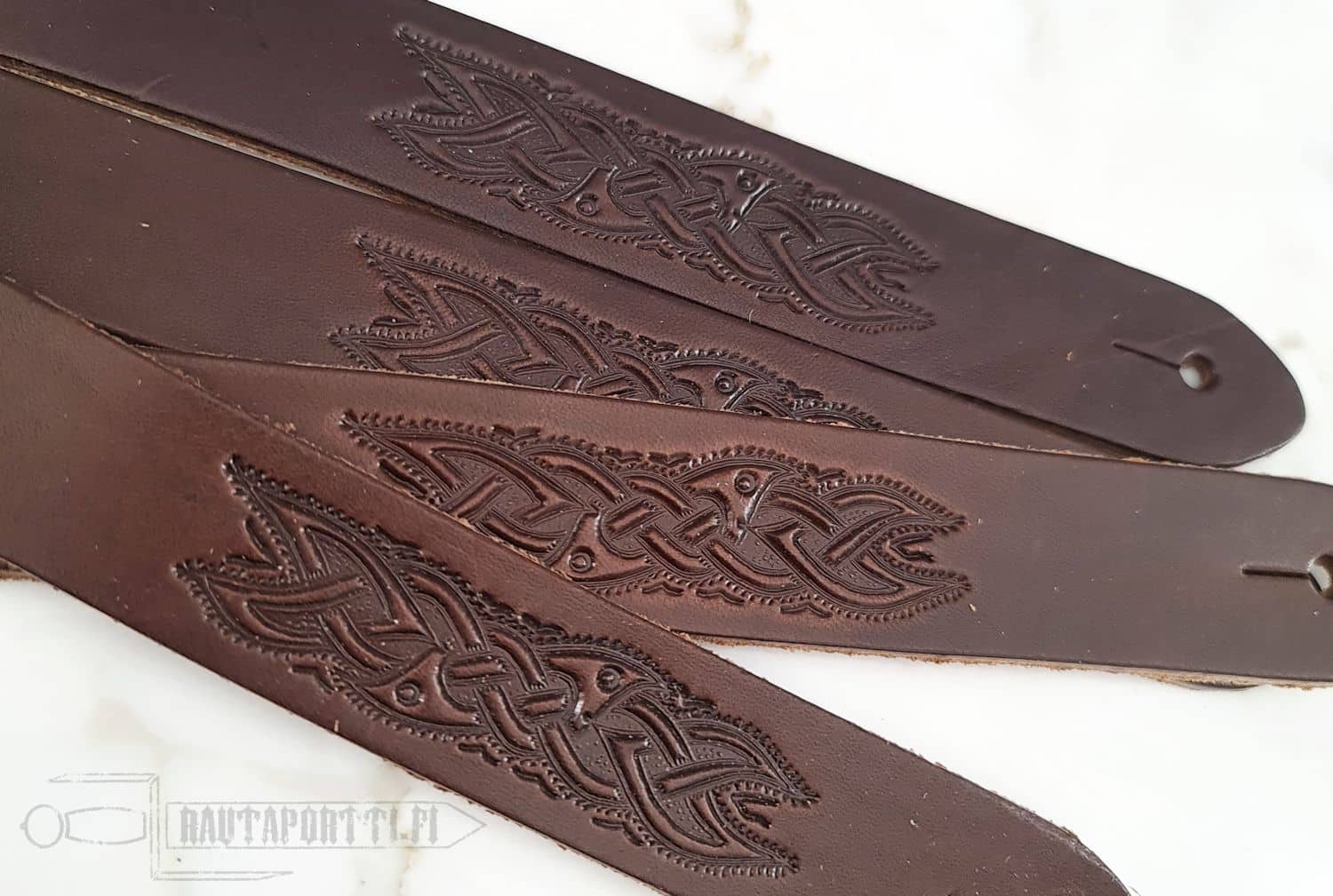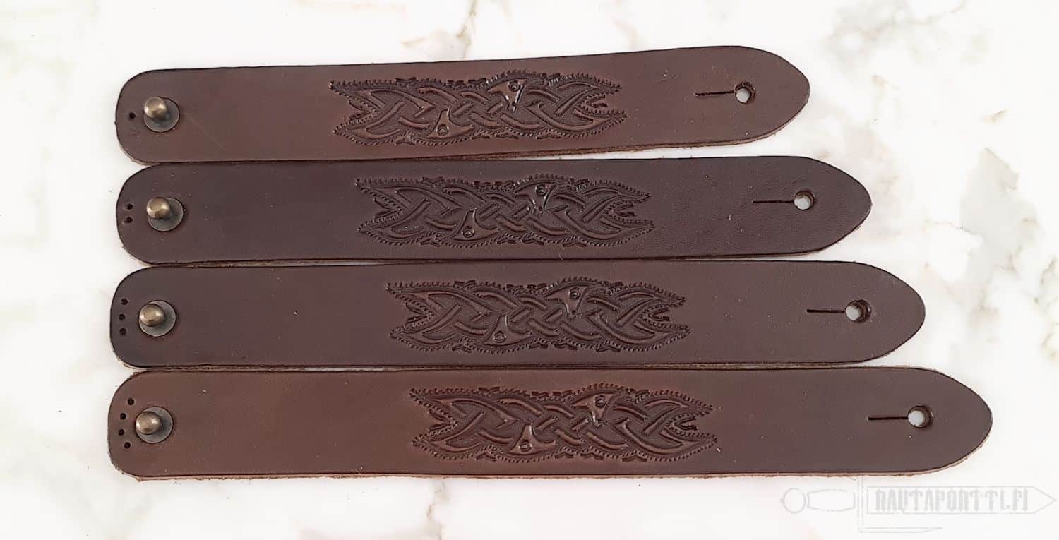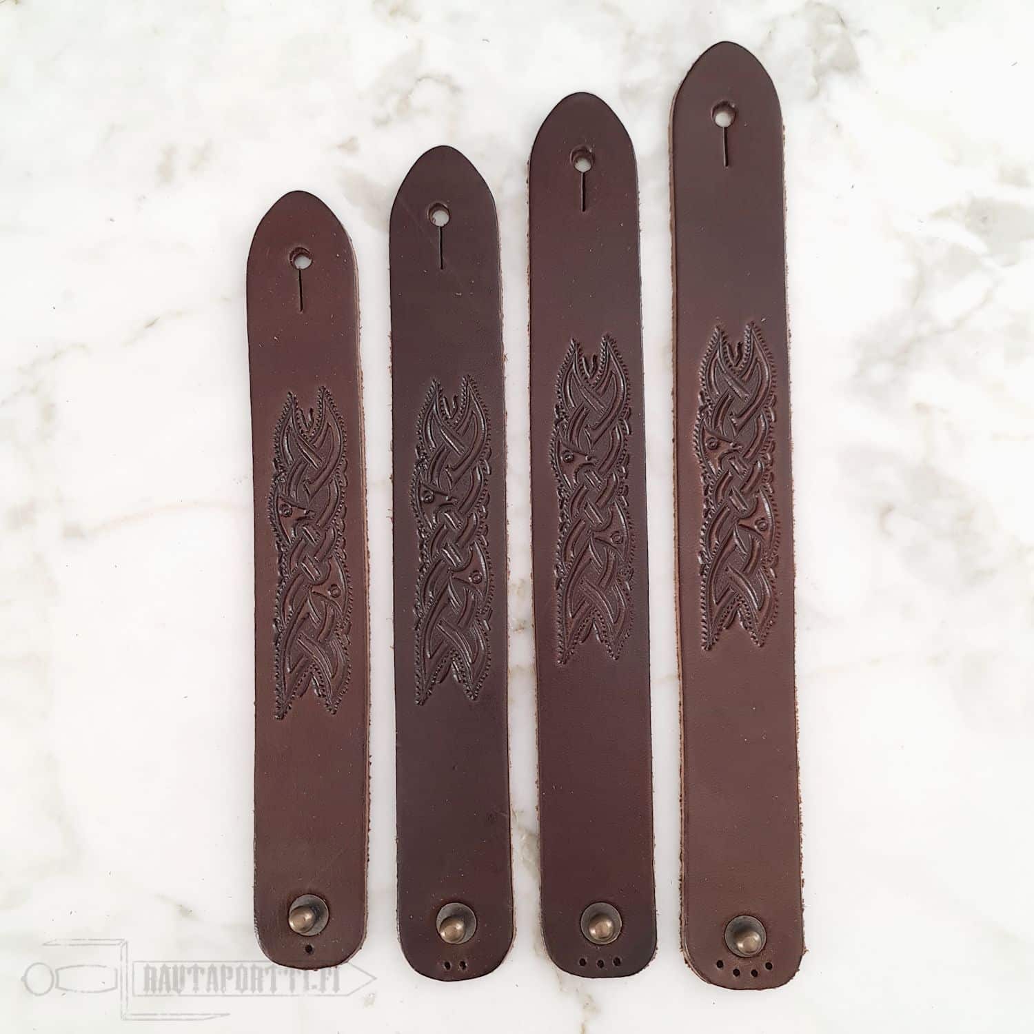 Today you too can express your style and love for history with this animal knotwork -decorated leather bracelet. The 3 cm wide bracelet is made of genuine vegetable tanned leather.