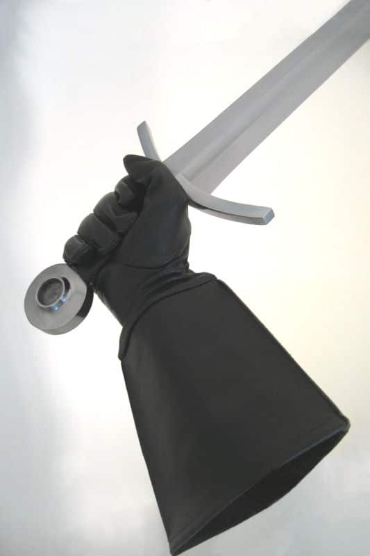 The long-cuff construction of these supple, leather gauntlets has been seen throughout the ages. Our gauntlets come undecorated to let you customize for your favorite era. The palm, hand and fingers are made of soft, pliable leather, so supple they give you the kind of flexibility you would expect from driving gloves.