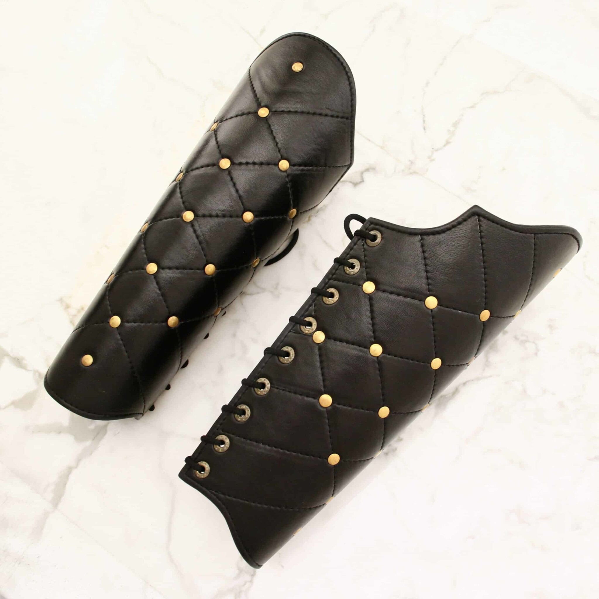 These greaves are made from heavy grade leather. Although thick, this leg protection is comfortable enough to wear all day long. Designed to protect the lower leg from the cut of a sword or the vicious kicking that occurred during battle, they are good for a large variety of outfits from Roman soldier to medieval adventurer to fantasy outfits. They are sufficient for soft fencing, and as a light protection in wood and steel fencing. Heavy grade leather has been a popular material in armory throughout the times as it gives excellent protection against slashes as well as against crushing blows. Includes two greaves.