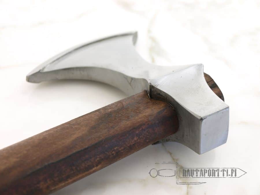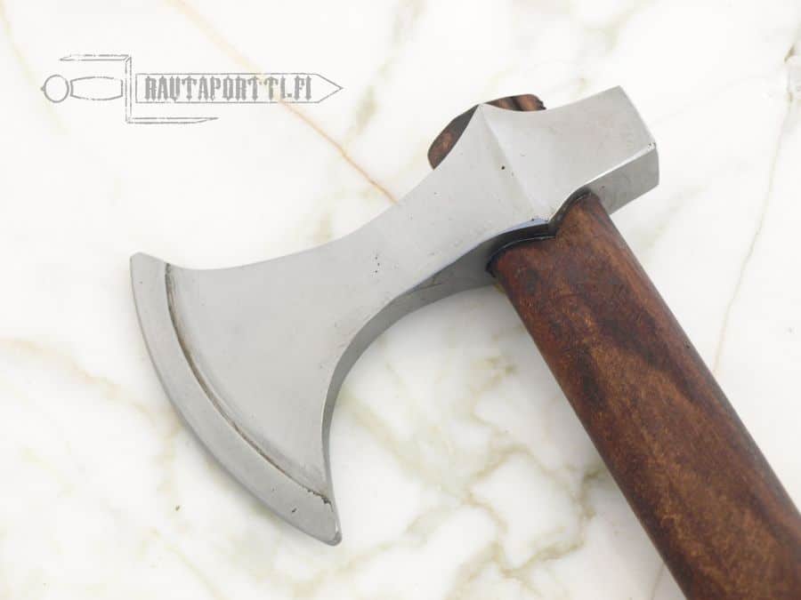 Like other viking weapons, axes too were often named. In the sagas you find axe names such as Himintelgja (‘heaven-scraper’), Rimmugýgr (‘Battle-hag’), Tjald-sperra (‘tent-spar’), Svartleggja (‘black-legs; black-hafted’), Hel (goddess of death) and Hlôkk (to scream/shout in rejoice).