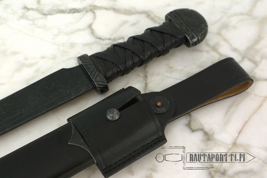 Each model has been put through rigorous physical testing to exceed industry standards. These battle tested weapons have a stone washed, blackened finish. The blued patina protects the blade from the frequent rust spots and stains that occur so often from everyday practice and exposure to the elements. Each is individually inspected at every step of the manufacturing process, and only after passing inspection they receive the armorers stamp on the blade. A certificate signed by the smith who wrought your weapon is included.
