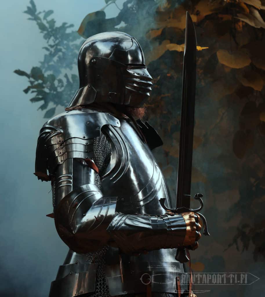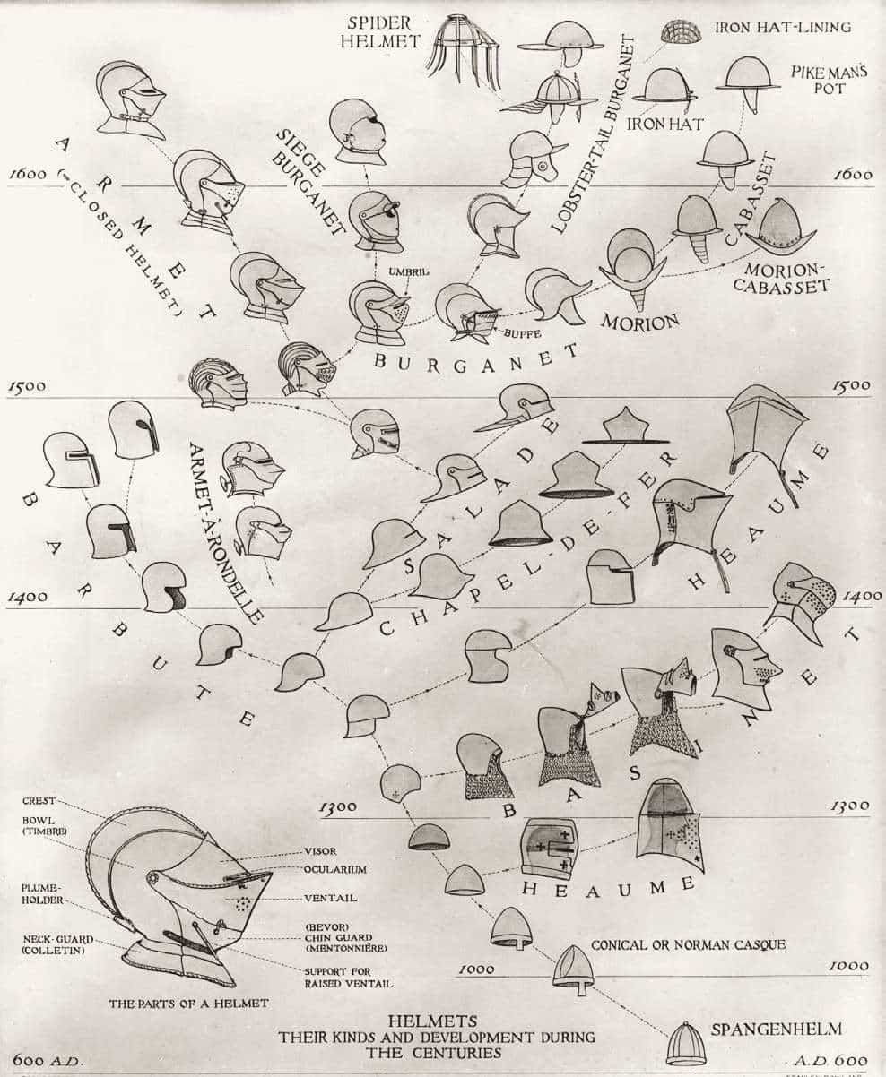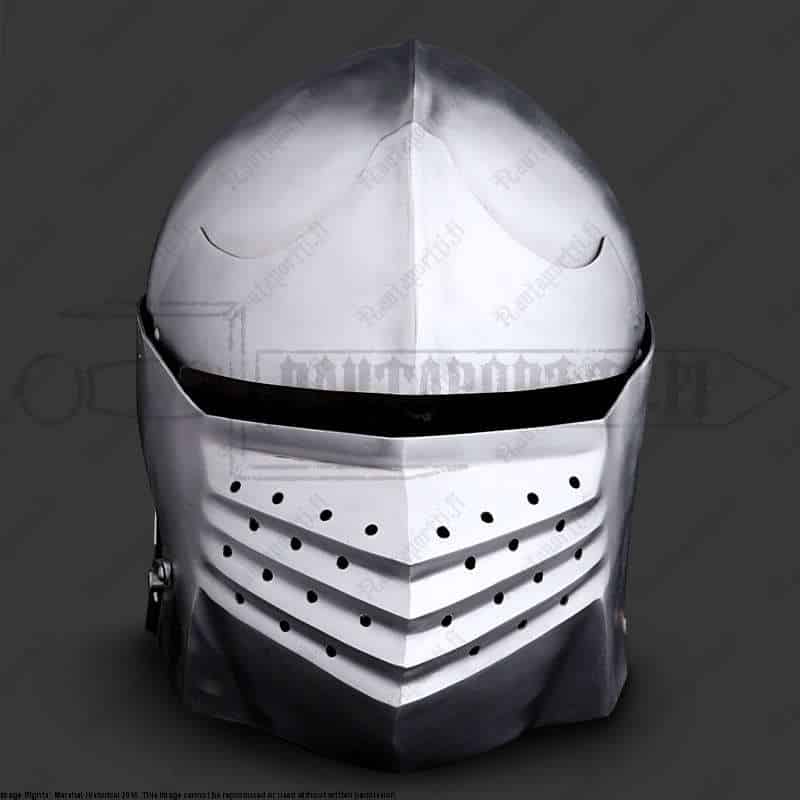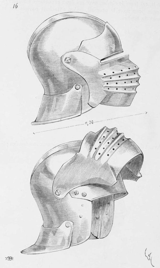 Near the end of 15th century sallets began a transformation into the shapes known as “transitional sallets”. The sallet transitioned from a helmet covering the top of the head and upper face into a fully closed helmet protecting the whole face, jaw and throat. The evolution ended up in 16th century close helmets, armets and burgonets.