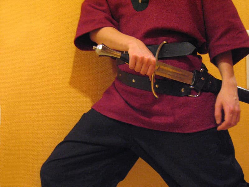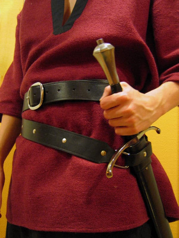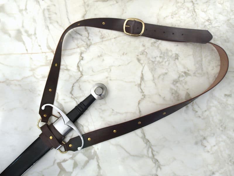 This versatile belt can also be used as a baldric. Please note that depending on the wearer’s height and the length of the belt some additional belt holes may be needed for correct height/placement of the sword.