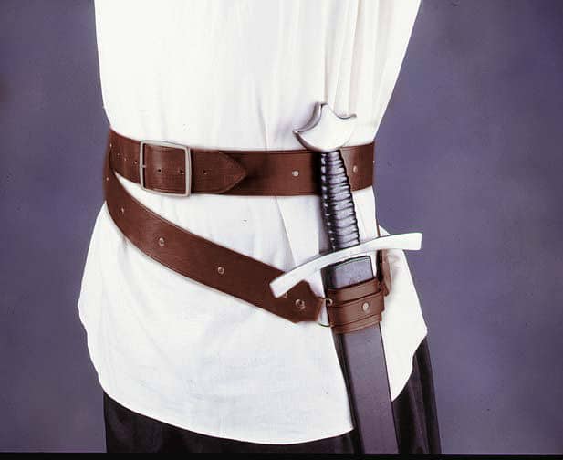 From the early Celts to well past the Renaissance, warriors figured out that a double wrap belt was a more comfortable way to carry a sword. But it was in medieval times that the practice really flourished. When the extra length of belt wraps around a body the second time, both hips then support the weight of the sword. Besides the balanced suspension, this belt presents a swashbuckling appearance. Includes a frog hanger that will fit almost all scabbards. Made of beautiful top grade leather it is 4.4 cm (1 3/4″) wide.