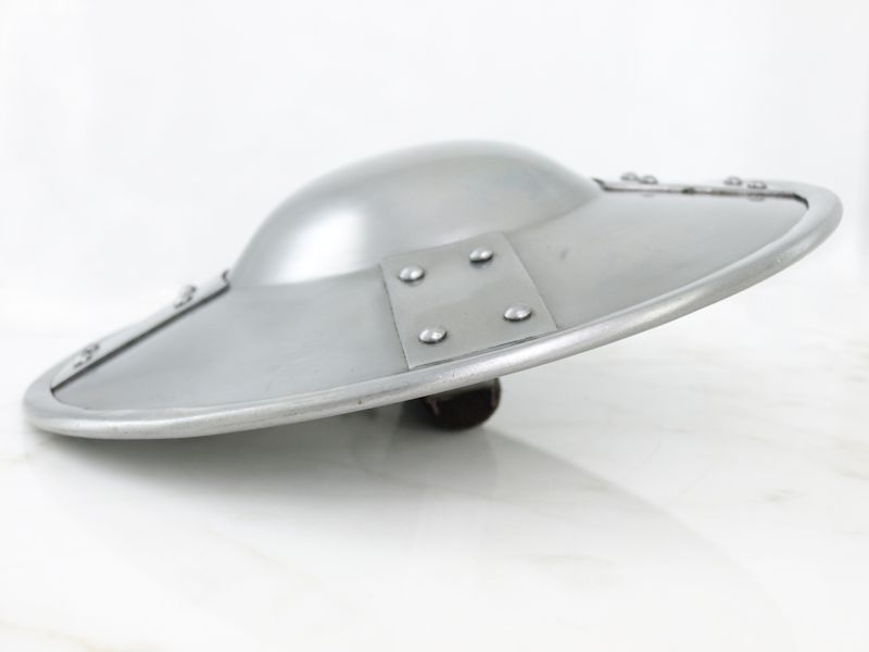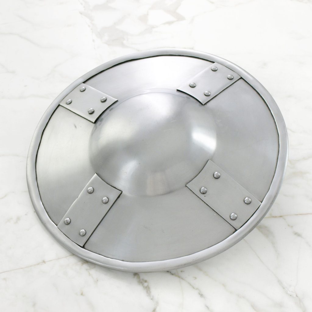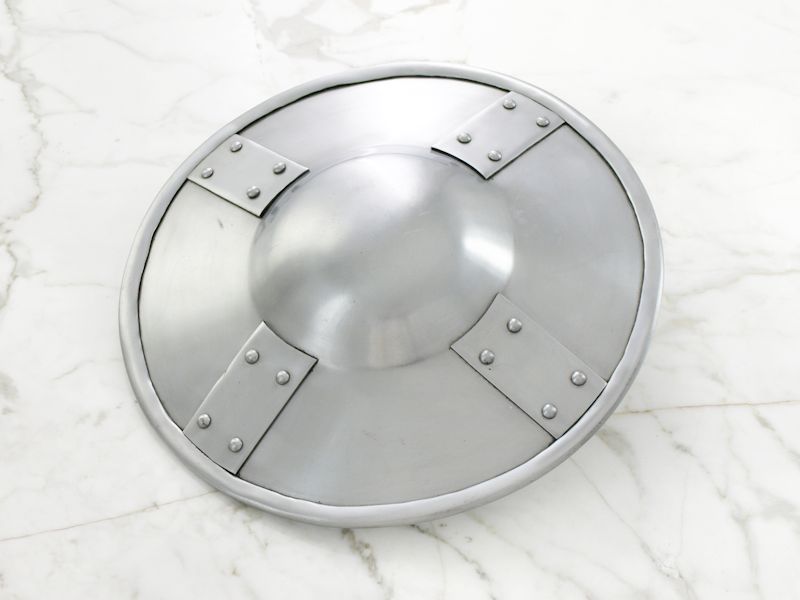 This buckler is made from 2 mm thick steel and has been designed for full-contact re-enactment combat use.