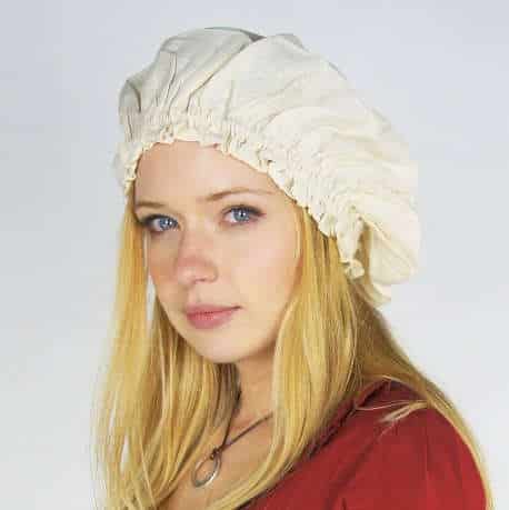 Muffin caps or mob caps were circular caps worn by women from the sixteenth century onward. Originally they were of a very informal style, but eventually they evolved into a high-fashion item as part of the adoption of simple “country” clothing during the 18th century. During the French Revolution, the name “Mob Cap” caught on because the poorer women who were involved in the riots wore them. These types of head dresses remained in use as the head covering of servants and nurses as part of their uniforms well into the 20th century.