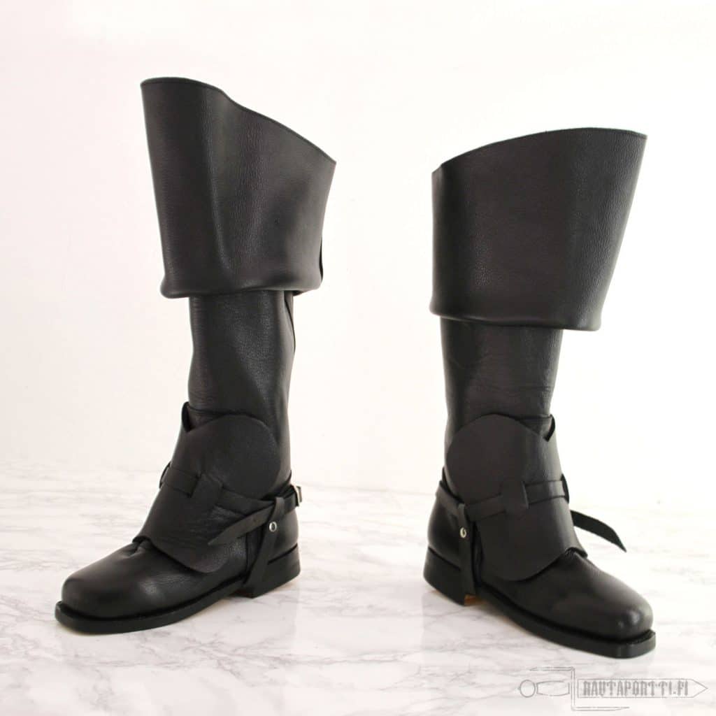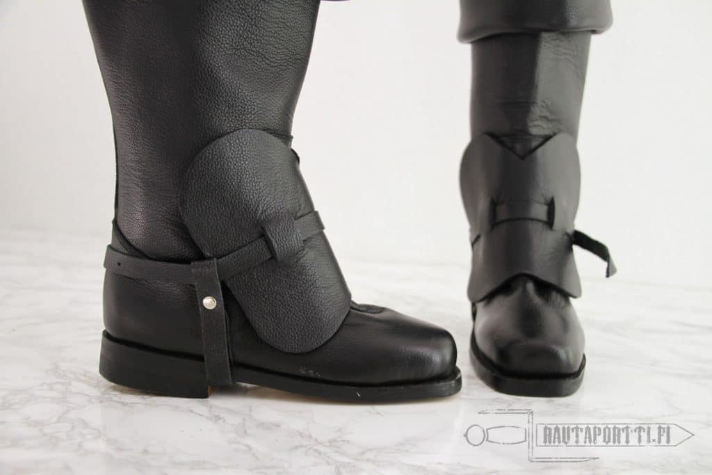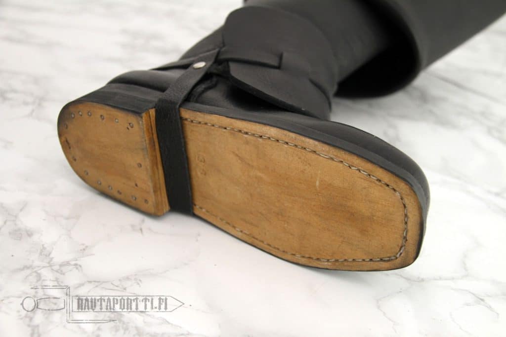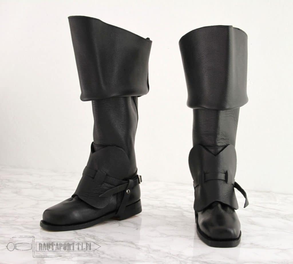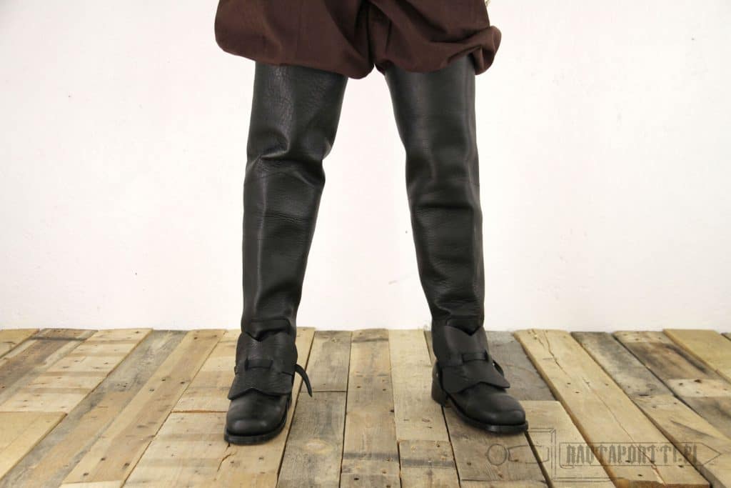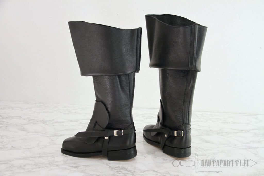 The musketeer boot follows a historical pattern in which no distinction was made between the left foot and the right foot. The boot comes with a standard flat inside sole, so for extra comfort, if wearing these boots for a longer period, you can use extra insoles.