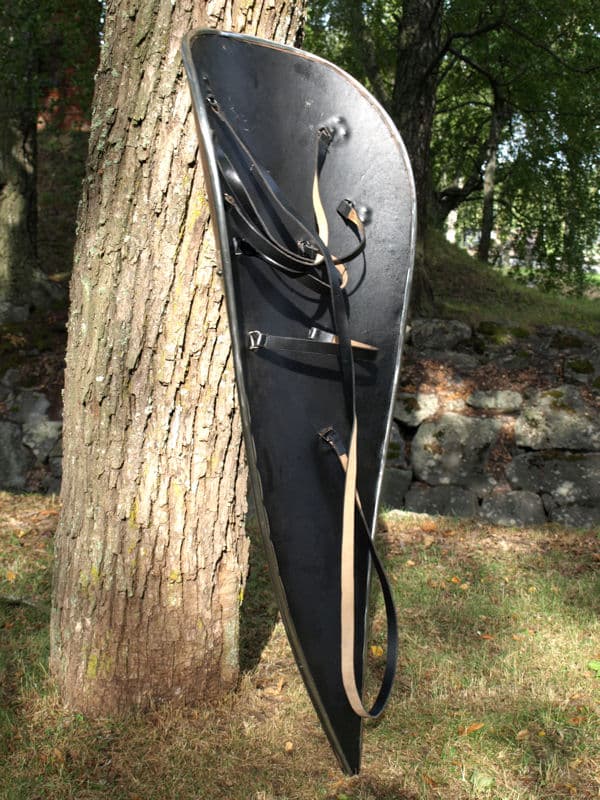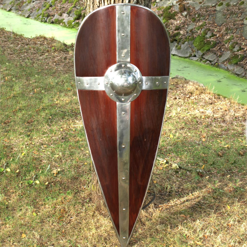 Normans (men from the north) were conquerors originating from Scandinavia who were renowned all through Europe. Normans attacked England in 1066 and through the decisive victory in Hastings went to conquer all of England in just a few years. The famous Bayeux Tapestry depicts this battle and gives us a good understanding of Norman equipment. Normans used kite-shaped, long and downward narrowing shields that protected the feet of a warrior much better than same-size round shields. This shield-shape spread all across the Europe with the Norman warriors.