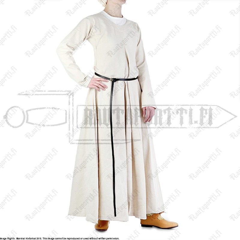 This tunic/dress is based on original patterns, and has a typically narrow and modest neck. This dress has been left unadorned so as to keep it historically accurate for a long timeperiod. Made of 100% cotton. Made by Marshal Historical.