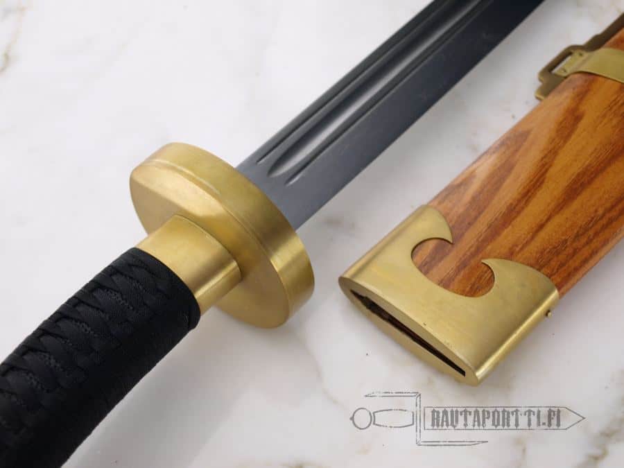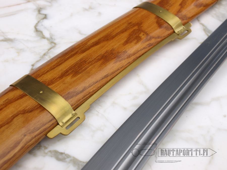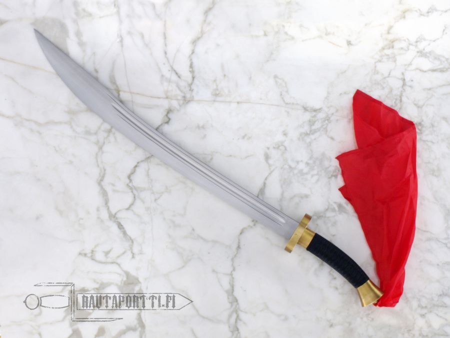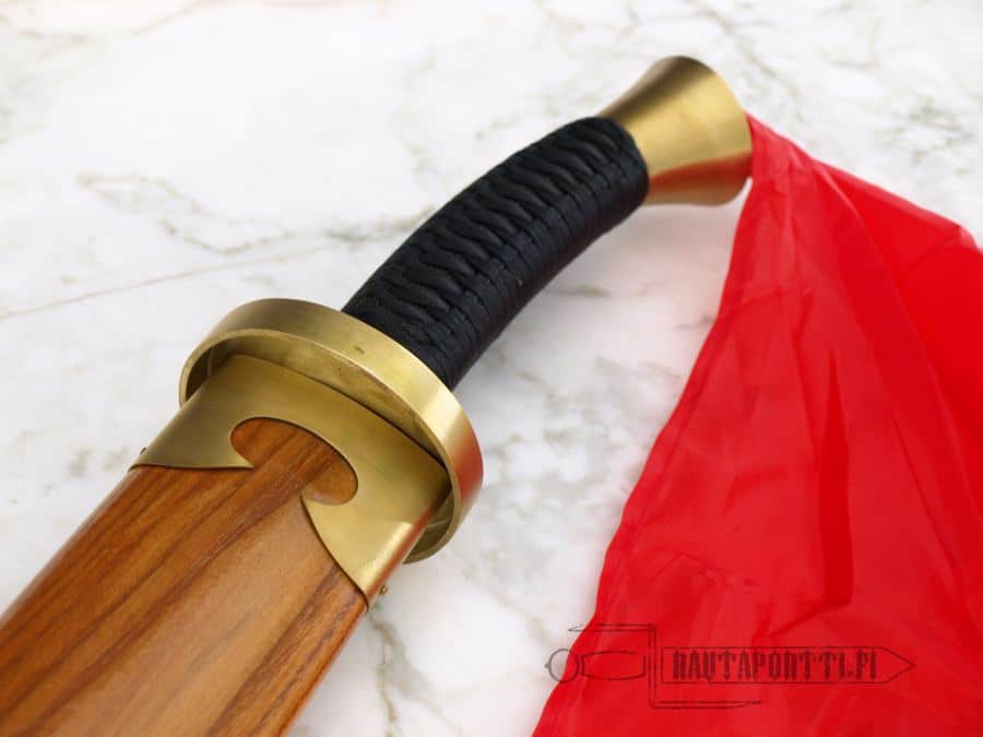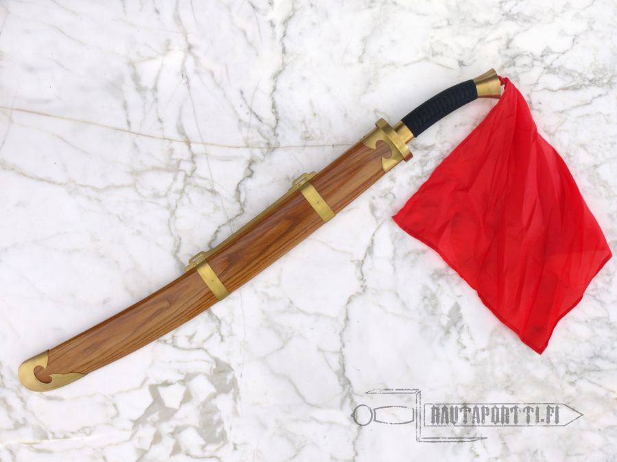 This Oxtail Dao is undoubtedly one of the best weapon-grade swords of its type commercially available. Unlike many decorative and theatrical versions of this sword, this sword forged by Hanwei is a true replica of the originals. The design of this ox-tail is traditional. The blade tapers distally and the grip is wrapped with cord. This Dao is balanced beautifully and handles very well. A brass-mounted wooden scabbard is included, as is the red scarf attached to the pommel. Made by Hanwei. Specs will vary slightly from piece to piece.